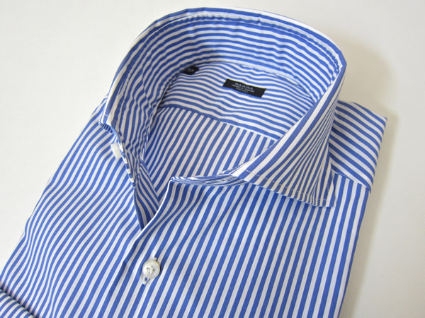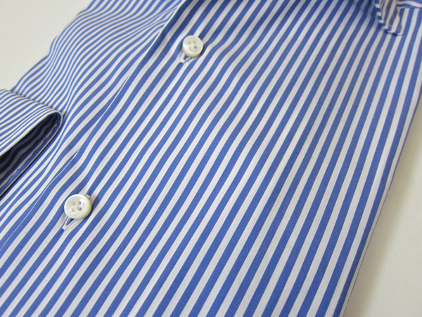 インパクトのあるロンドンストライプは、今季注目のビビットなブルーにてオーダーしました、春夏の気分を盛りアゲてくれるシャツになるはずです。