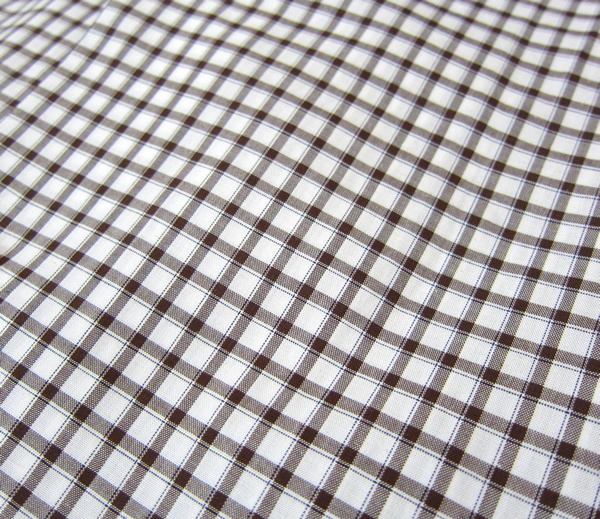太めのブラウンチェックに寄り添うよう、ブルーのピンストライプを走らせたもの。