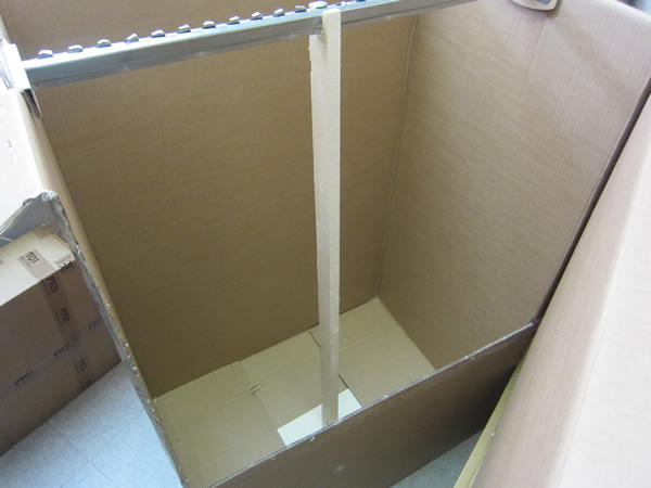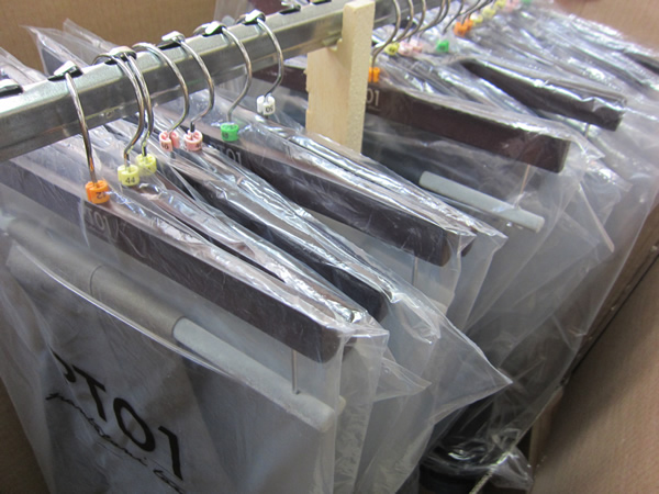 人が二人は入れそうな、かなり大きなダンボールです。ハンガーを支える棒までが付いていて、そのまま洋服ケースとして使えそうです。イタリア・トリノから日本、そして岡崎にある私共の店へと商品が落ちることも無く、シワ一つ付かず、大切に送られてきました。ただ、大変なのは運ぶ方。ドライバーさんの汗の理由が良く分かります。入荷の内容は、また後日ご案内しますね。