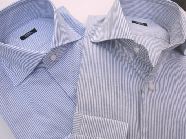 数多くの【BARBA(バルバ)】の生地の中に、気になるものを見つけました。洗いのかかったミニロンドンストライプです。この生地をカジュアルな「DANDY LIFE」で使うより、敢えてドレスの「BRUNO」に載せたら面白いかな・・・・ただ独りよがりのところも無いわけではないのですが、「DANDY LIFE」よりドレッシーでドレスの「BRUNO」よりラフな雰囲気、とでも言うのでしょうか。ただ皆様から、ドレスのシャツを洗えばいいだけじゃん、なんて声も聞こえてきそうです。