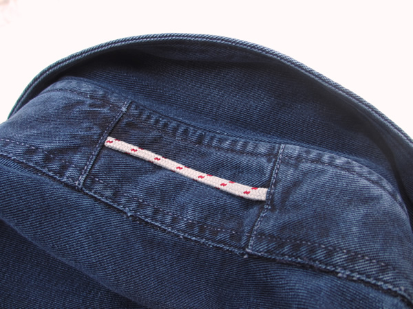 襟裏のハンガーループに左袖口剣ボロのトレードマークの”どんぐり”。”どんぐり”は、男の象徴なんです。