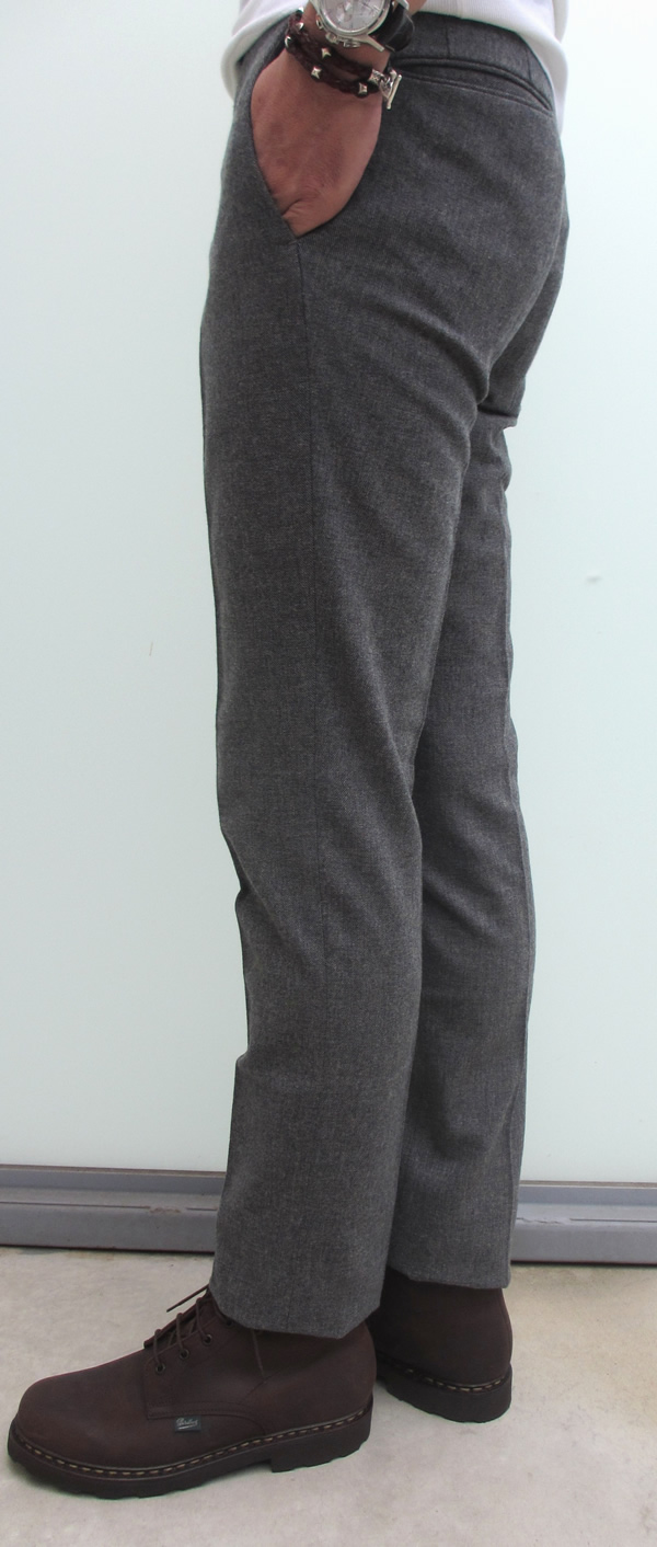 今季のパンツの動きやプレコレクションで来年の傾向を見ていると、ウールやコットン・ウール素材が注目されるのではないでしょうか。オン、オフ兼用で穿くためには、やはり細身のテーパードシルエット。それを考えると、この【INCOTEX/インコテックスは、お勧めです。オンではジャケットに、オフではムートンやダウンに合わせてみてください。