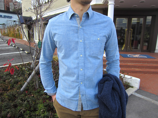 シャンブレー生地に胸ポケット、ワーク的な要素を取り入れているところに、アメリカブランドの匂いを感じます。