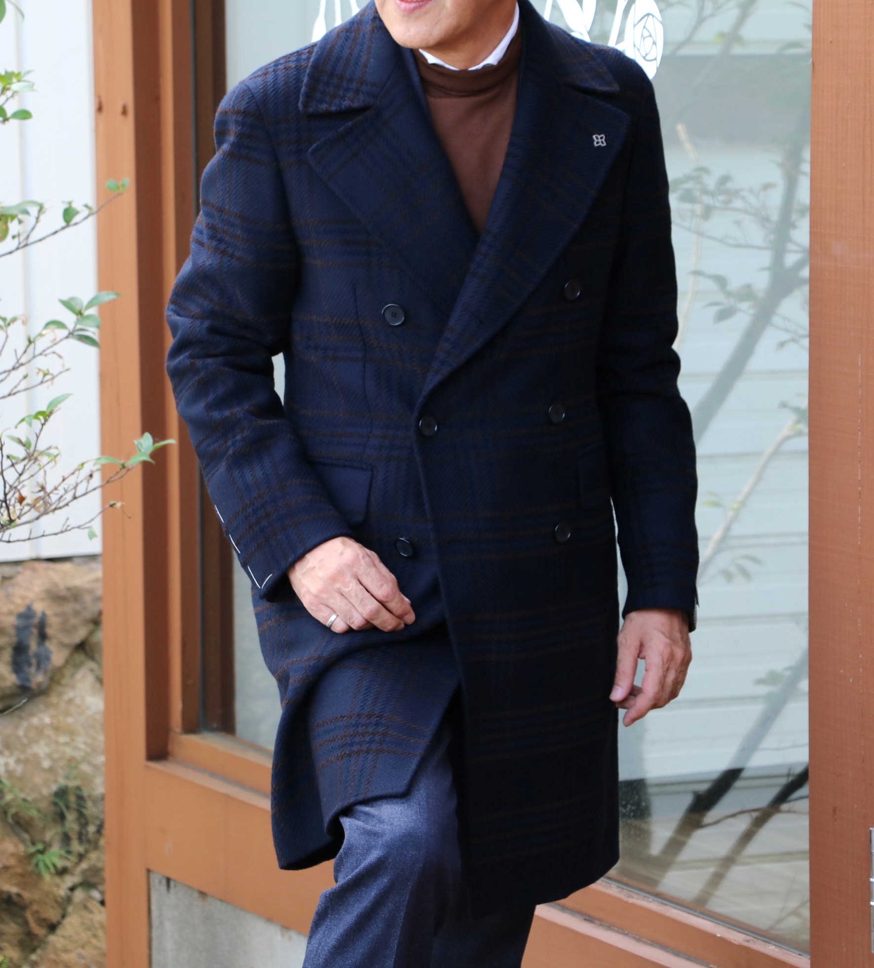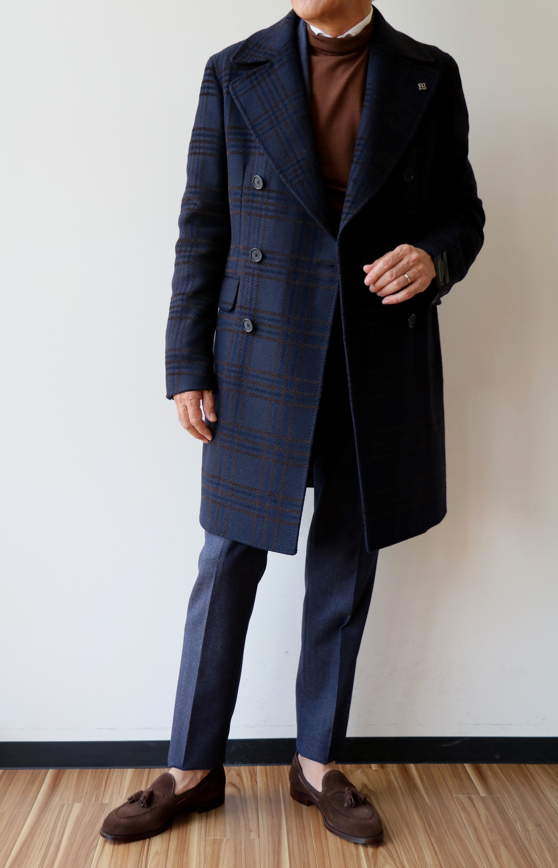 先のバルカラーコートに比べ、いわゆる【TAGLIATORE/タリアトーレ】らしい細身のモデルということで、こちらは普段と同じようにsize:46を着用しています。