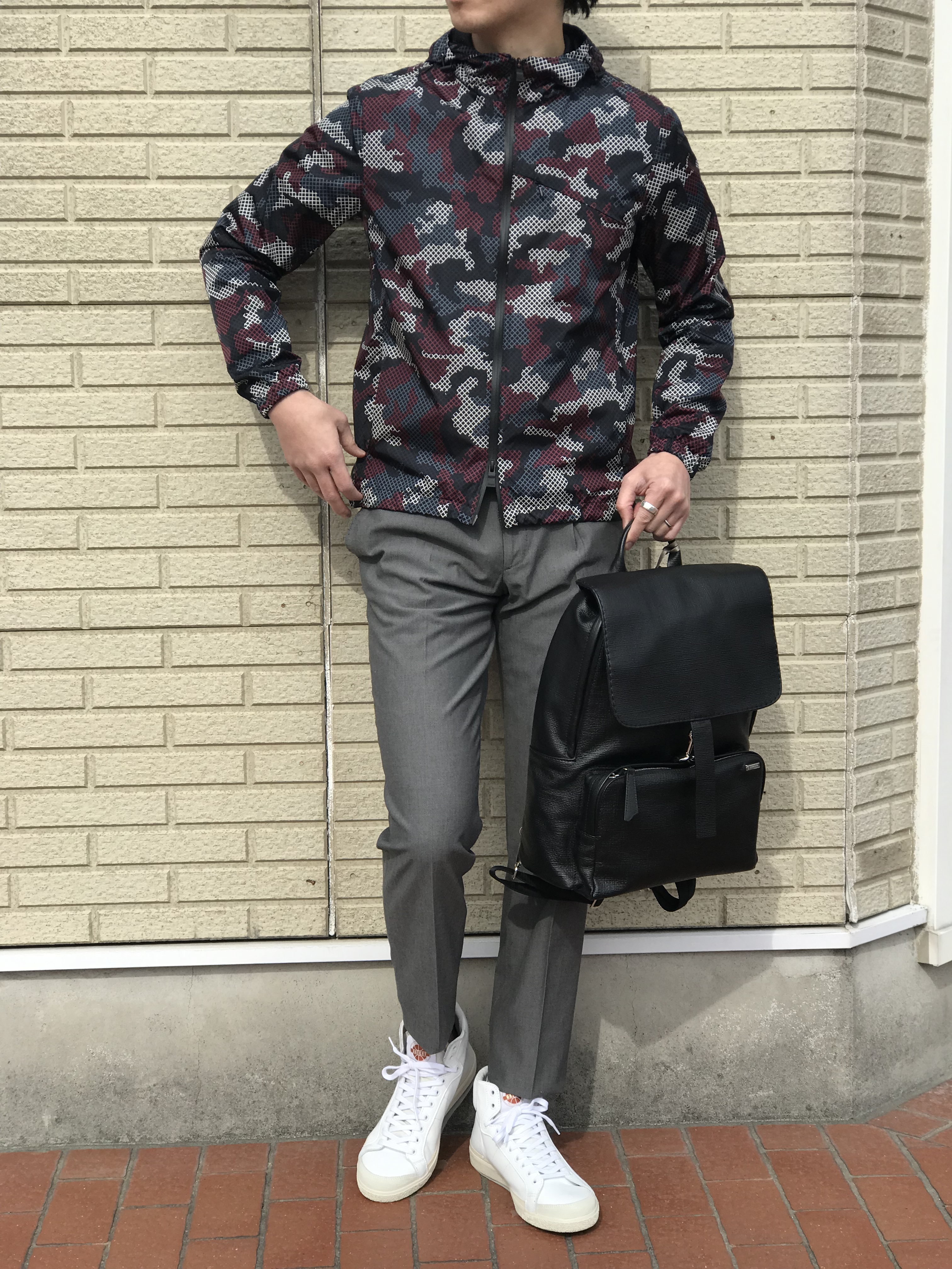 場にふさわしくない妄想はやめて、話を戻しましょう。こちらも私服で合わせています。手抜きと言わないでくださいね。こんなスタイルが気分です。Spring Court(スプリング コート)のスニーカーだけは借りています。