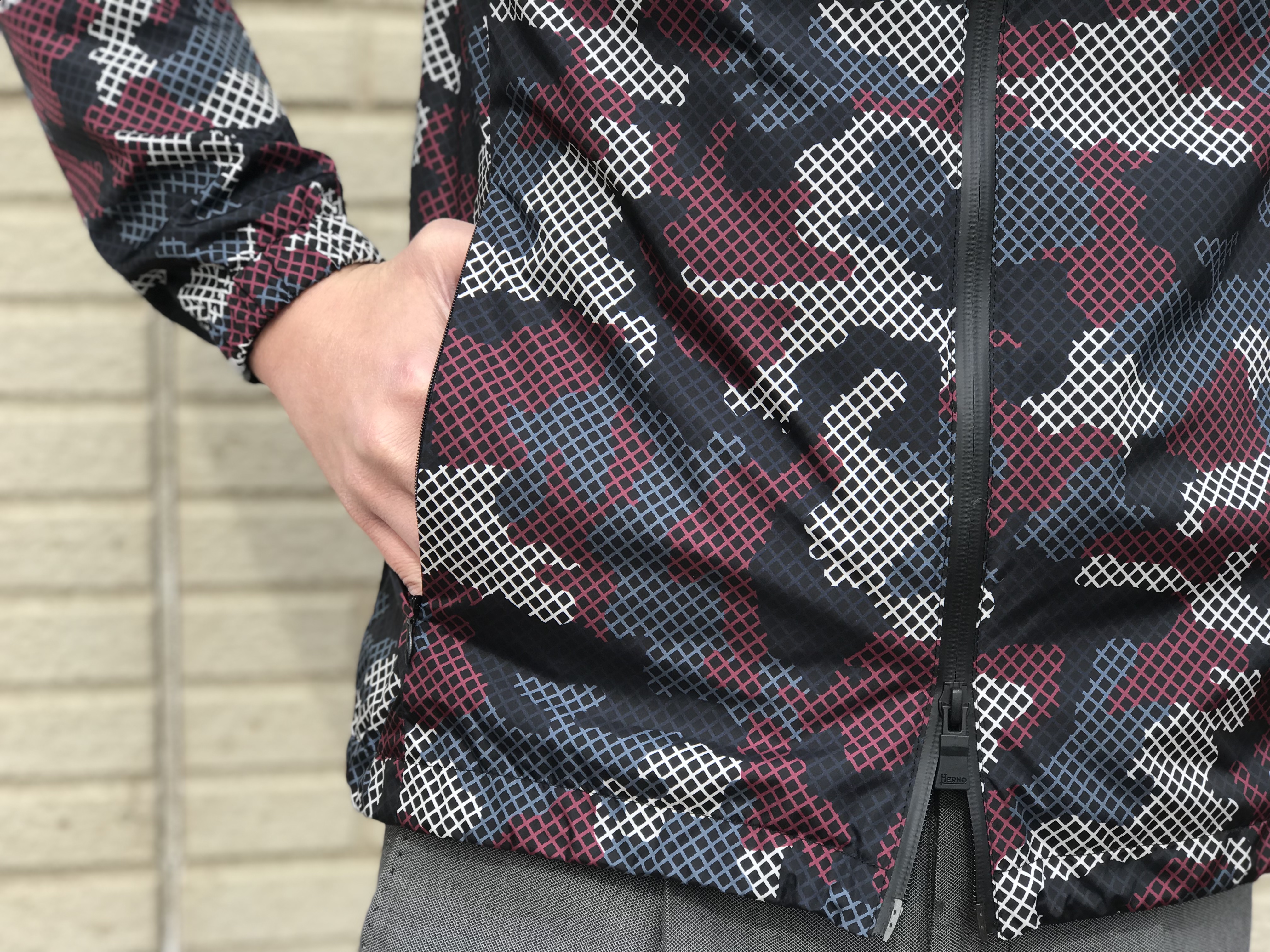 一風変わったカモフラージュ柄のフーデッドブルゾン。こちらは、まさに【HERNO/ヘルノ】らしさのタイトシルエットです。