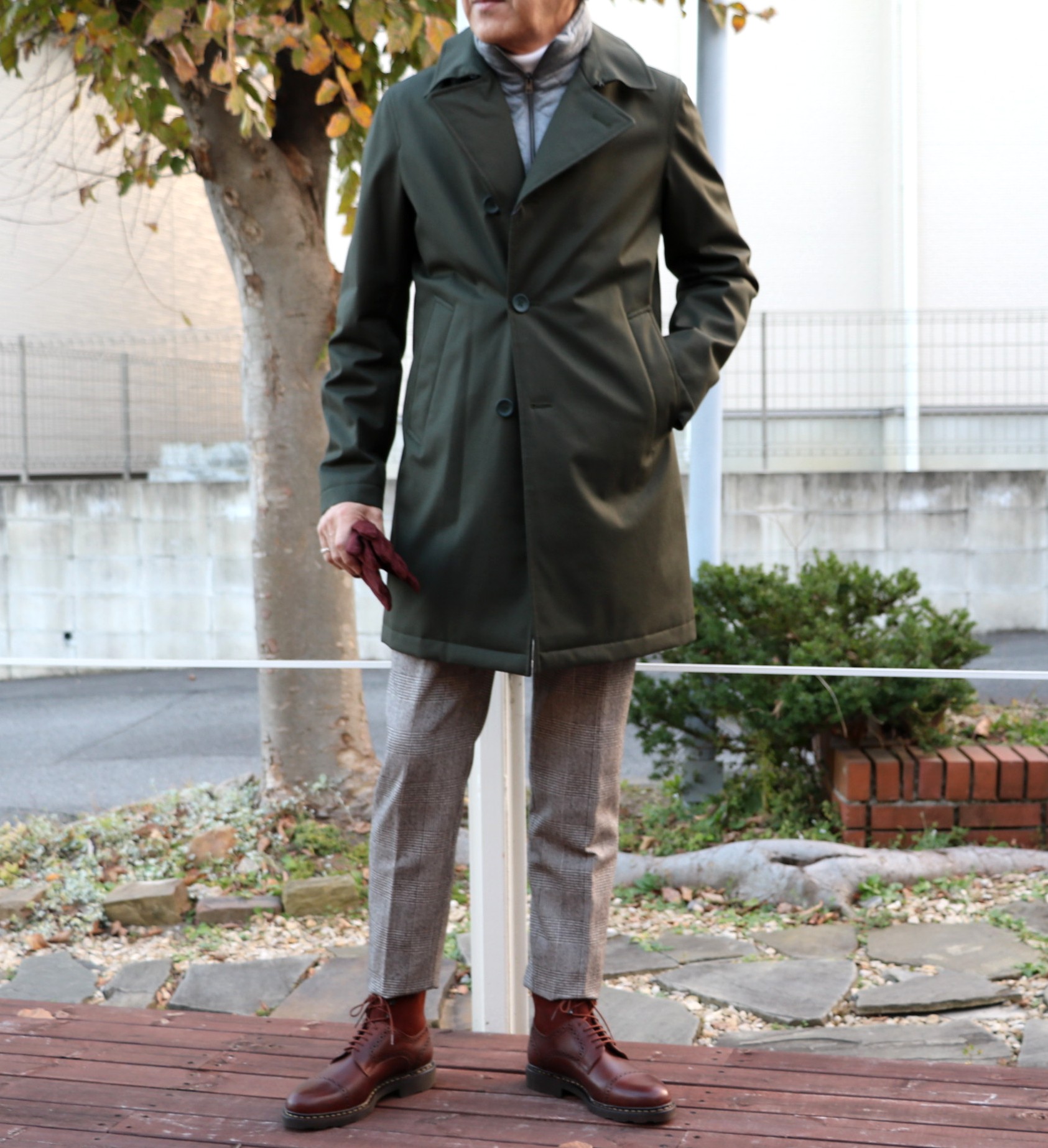 本日のご案内は、"しゃんと若さと色気を保ちながら、歳をとる秘訣"ではありません。急な冷え込みで、店頭ではダウンジャケットが動いておりますが、寒さを防ぎながら優雅に着流すコートにスポットをあてて、ご案内させていただきます。バイヤースグルのお勧め。言い換えるならば、購入意欲満々のコート達です。全て私物で合わせています。