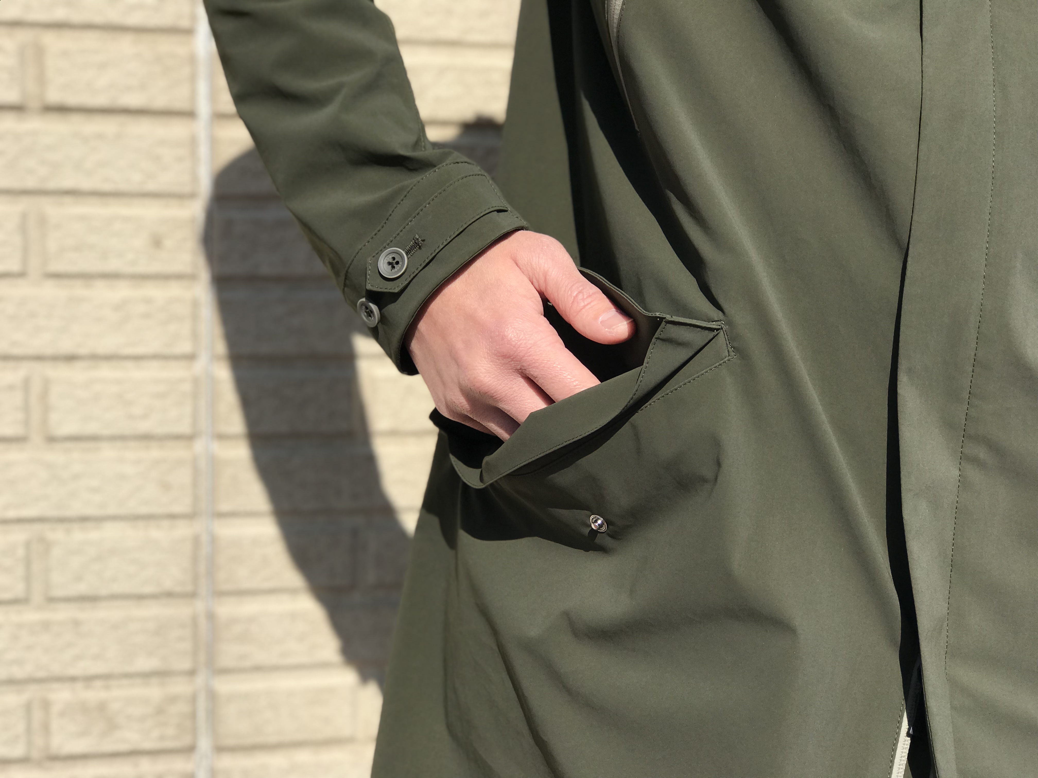 一体型のフードにフラップのハンドポケット、フィッシュテールというモッズコートとしての要素は持ちながらも、センターにプレスの入ったパンツにローファーを合わせたくなるような、ファッションという戦場を渡り歩くには打って付けの雰囲気です。