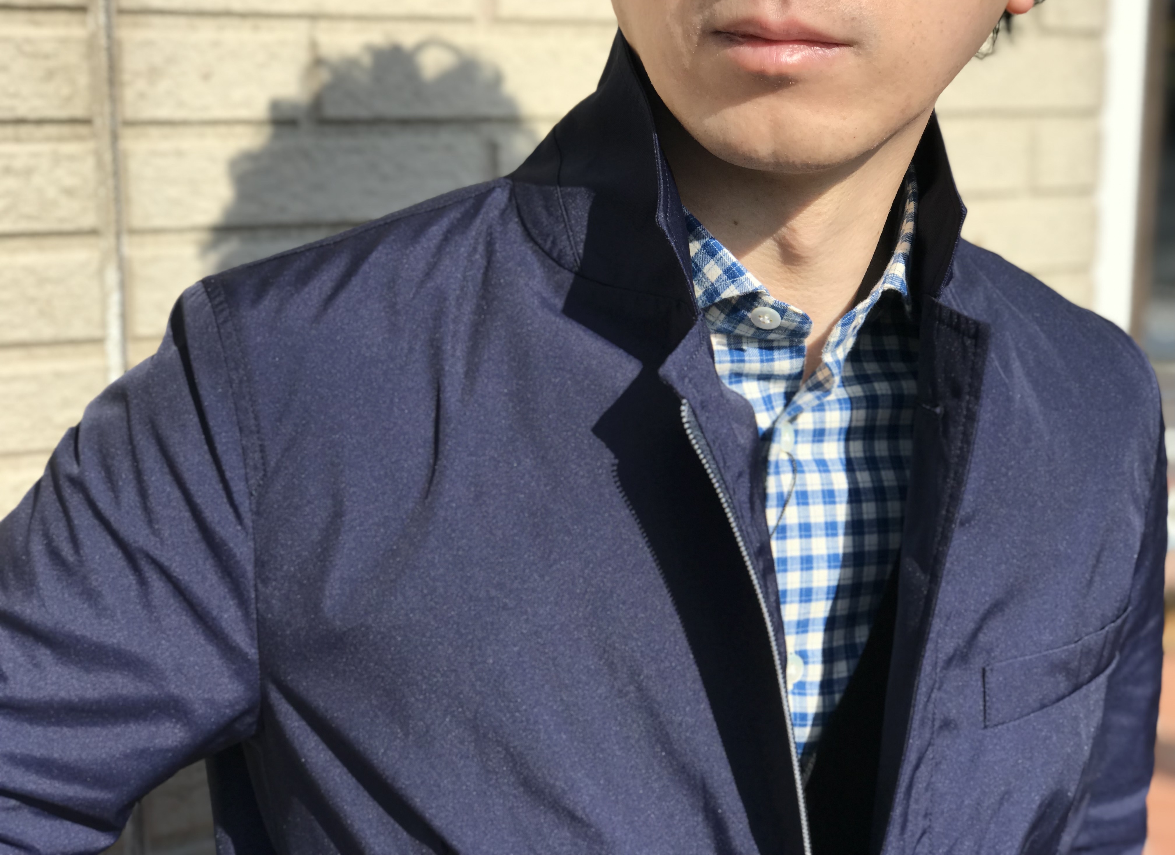 表面はツイルという斜めに織り目が入った強度の高い生地で、ハリコシのある生地は襟の立ち具合も良く、これが、柔らかなナイロンには出せないメリハリの効いたシルエットを作り出してくれるのです。