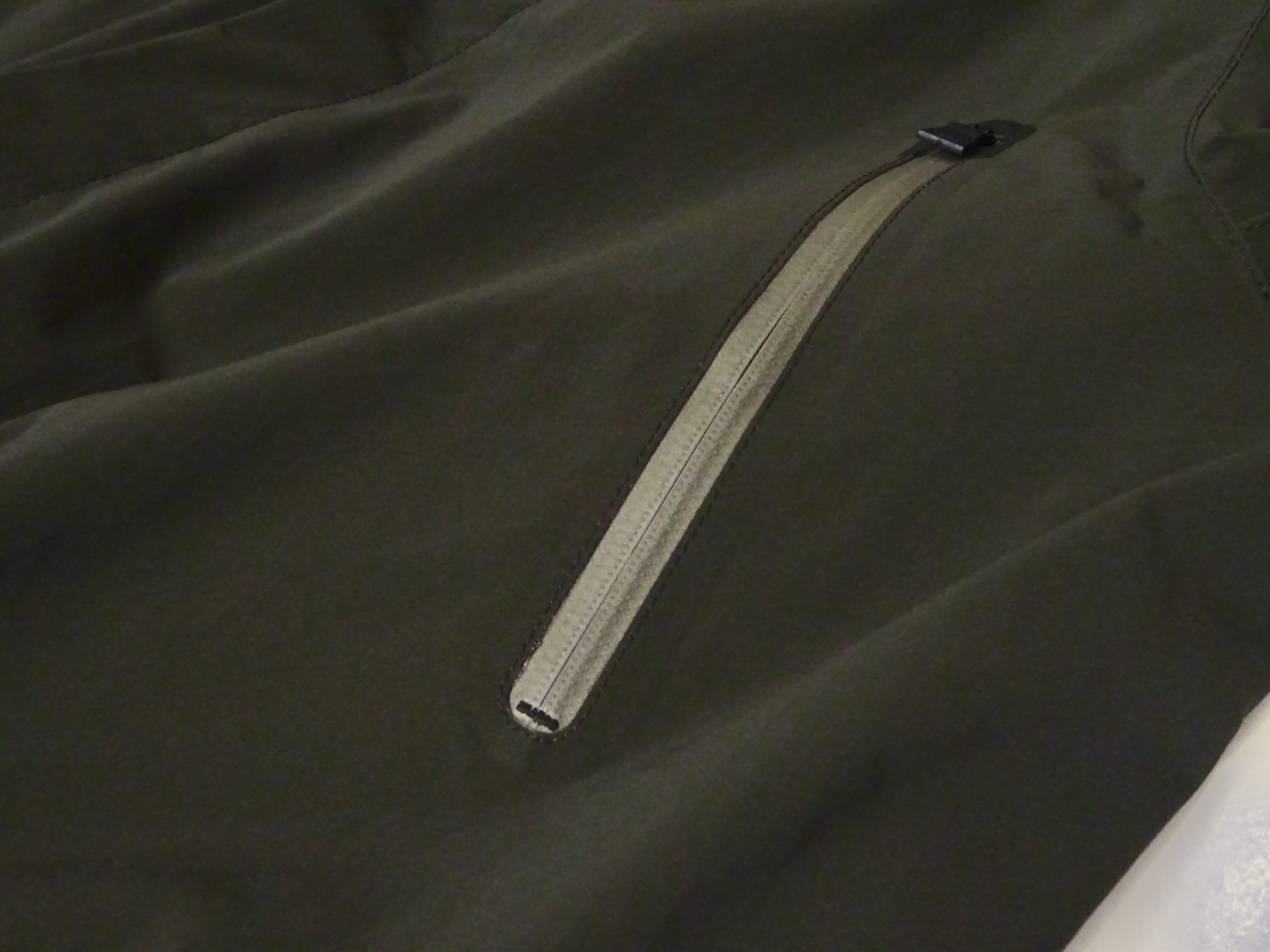 表地のコットンには水を弾くようポリウレタンコーティングが施され、ジップ部分や縫い合わせ部分の裏には止水テープが張り巡らされています。
