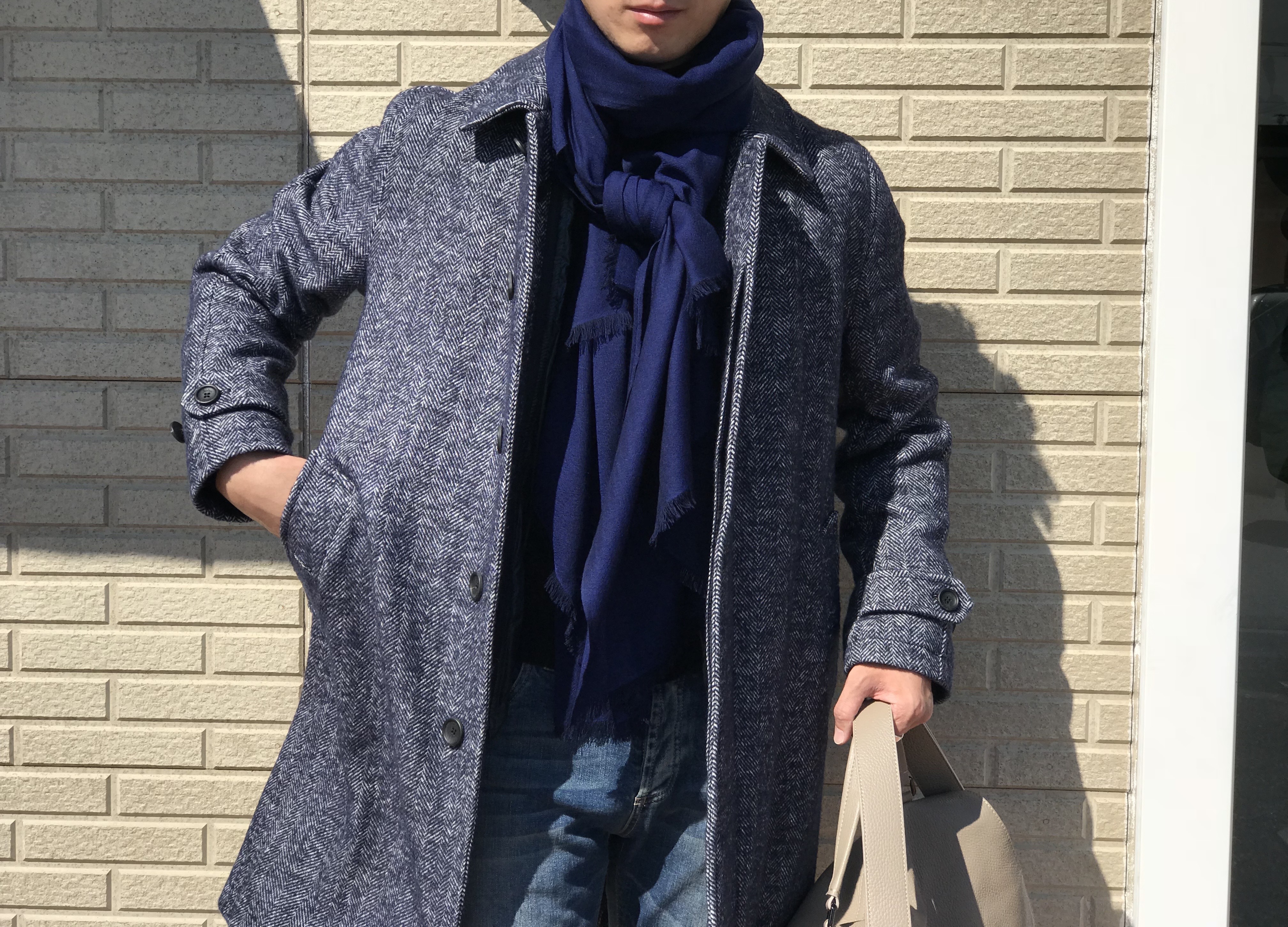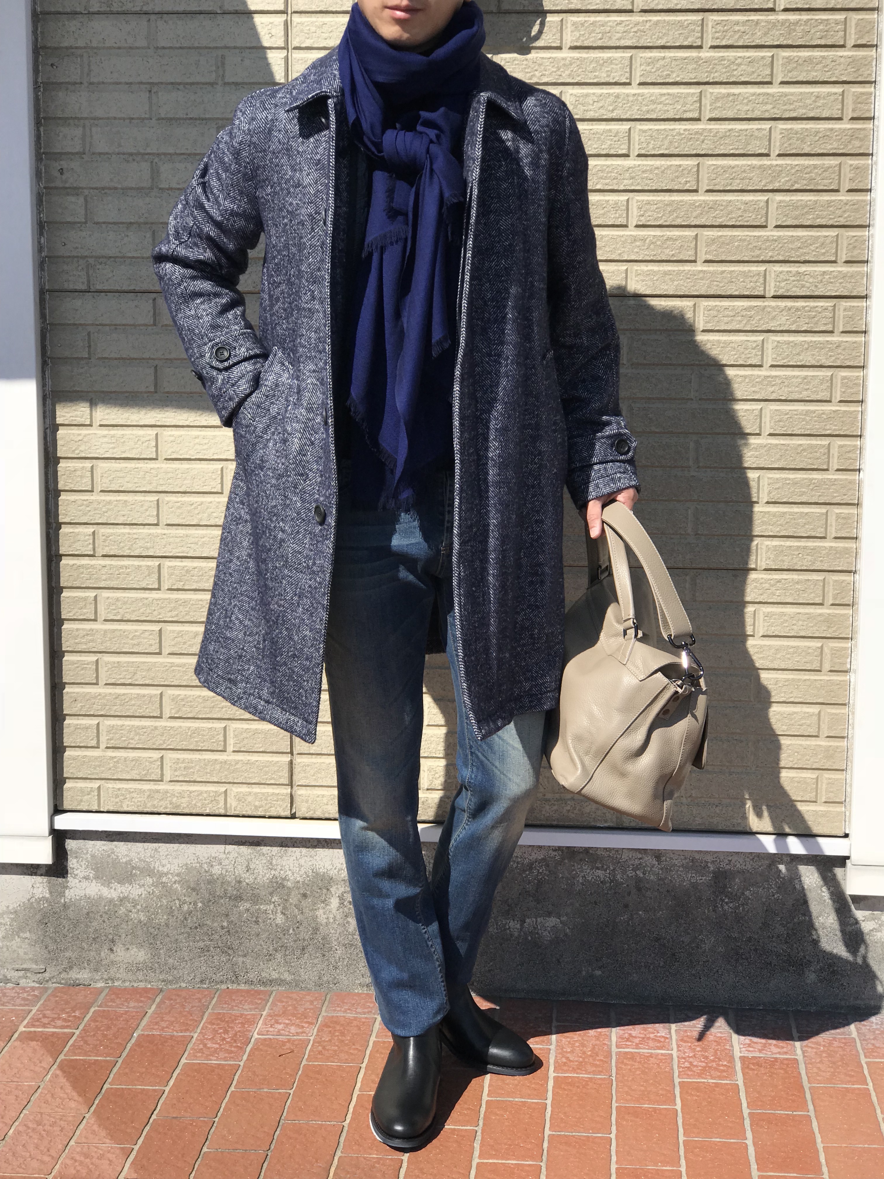 合わせたマフラーはJOHNSTONS OF ELGIN、パンツはBERWICH、靴Barbaneraはです。