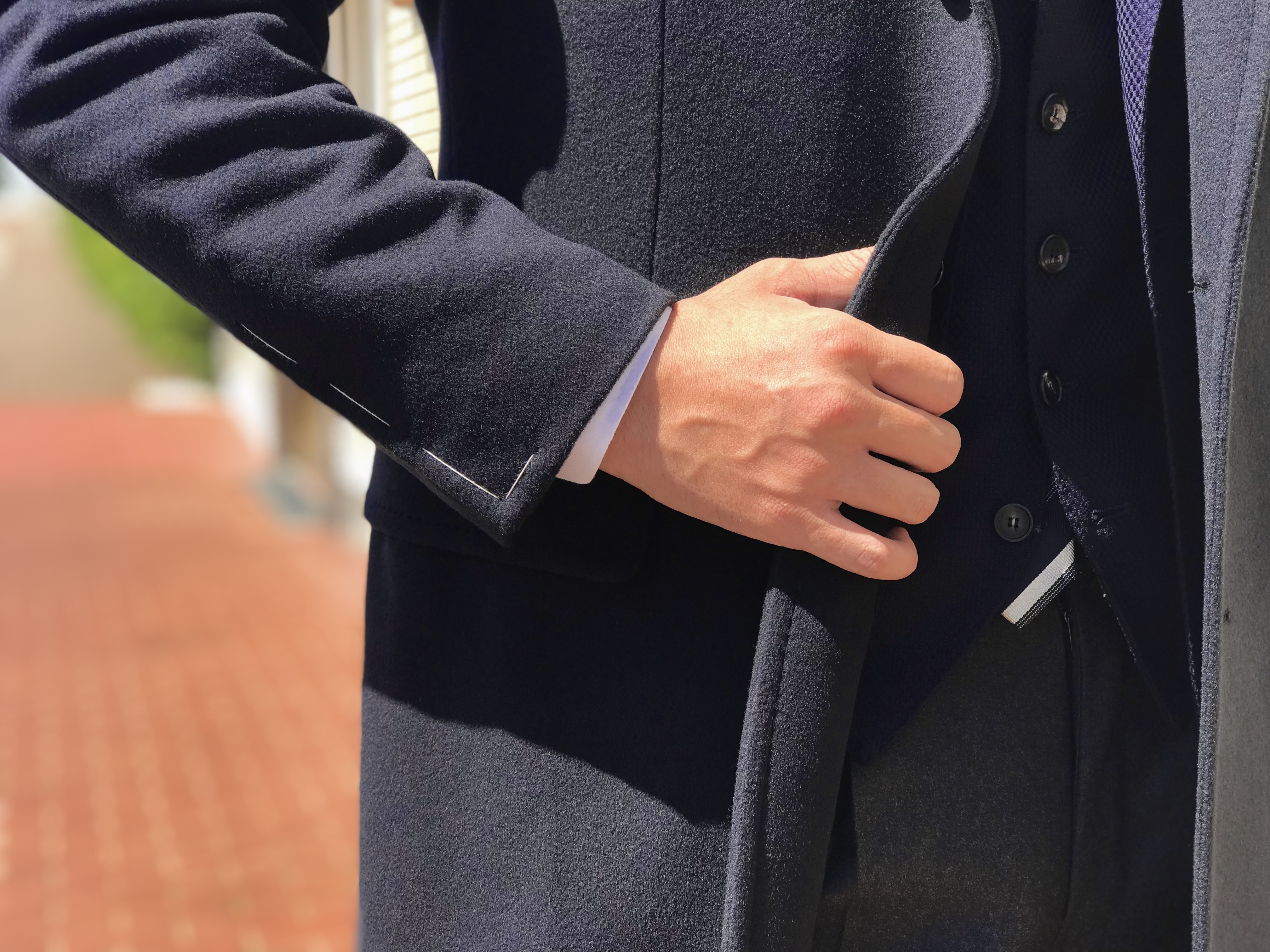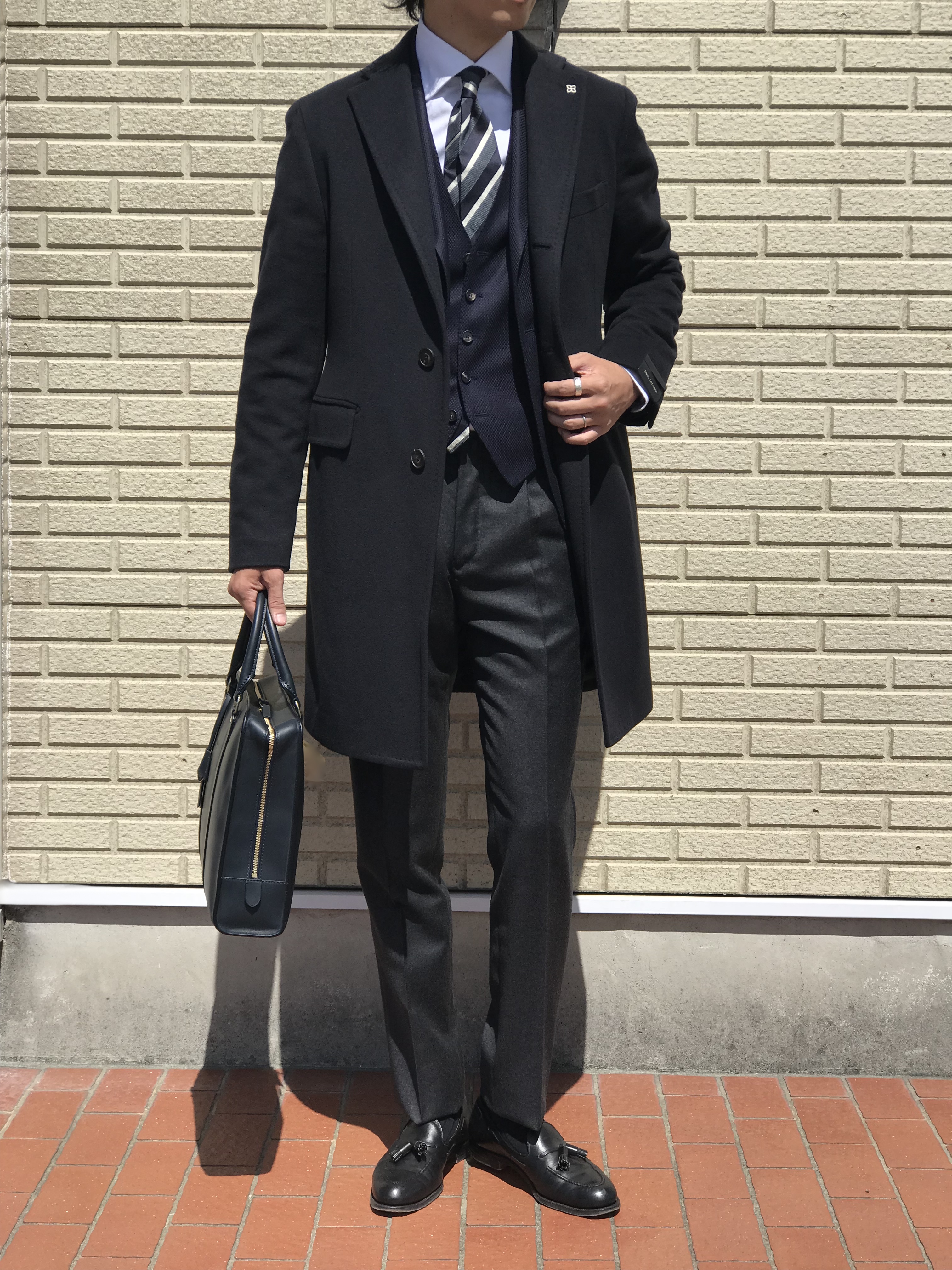 さて、本日はタカイがご案内する【TAGLIATORE/タリアトーレ】のチェスターコート、共地のジャケット&ジレの3型。まずはコートのご紹介からです。
