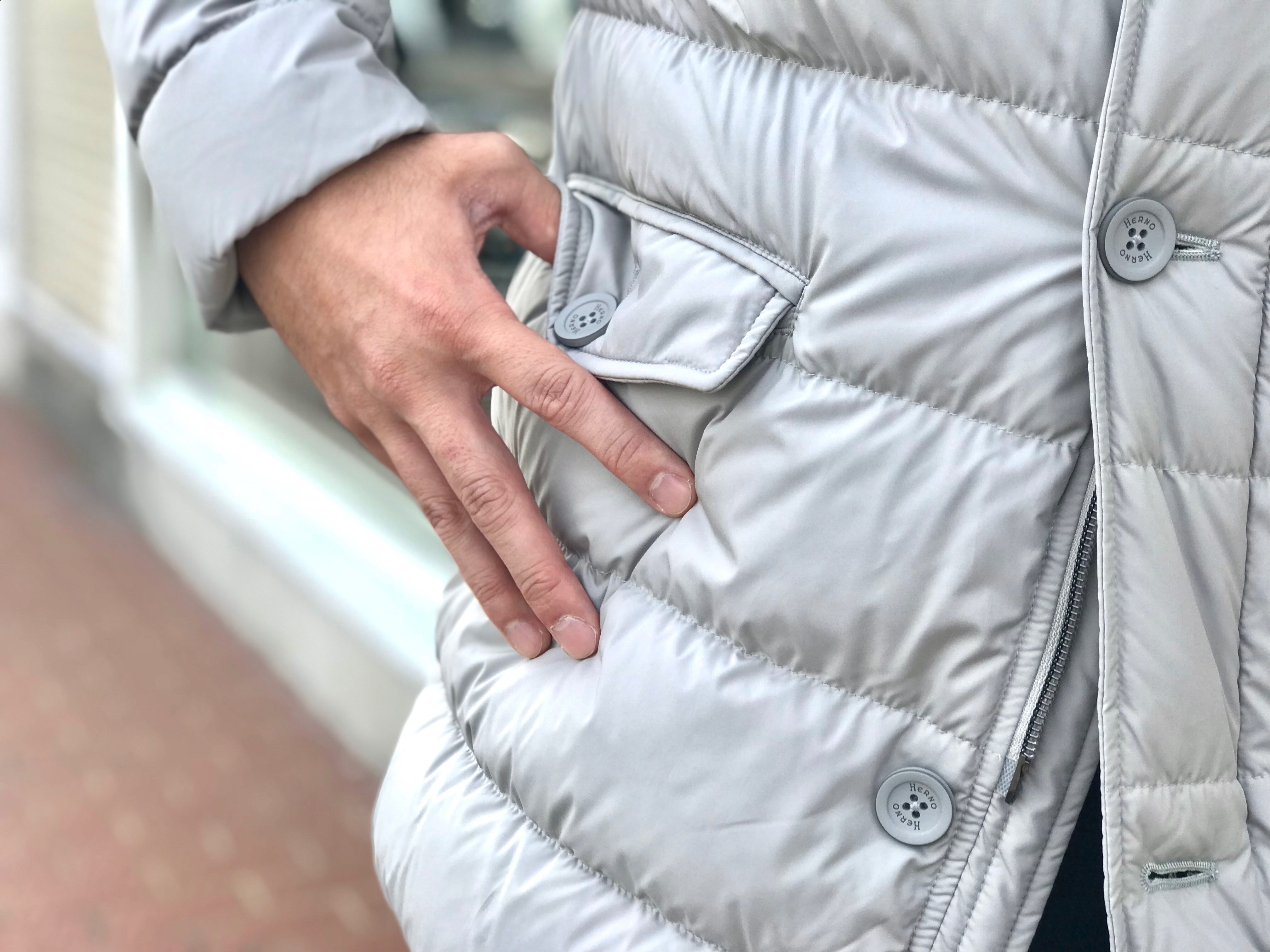 【HERNO/ヘルノ】のダウンとしては大定番モデルとなっている、ウォームポケット付きのファー付きダウンコート。
