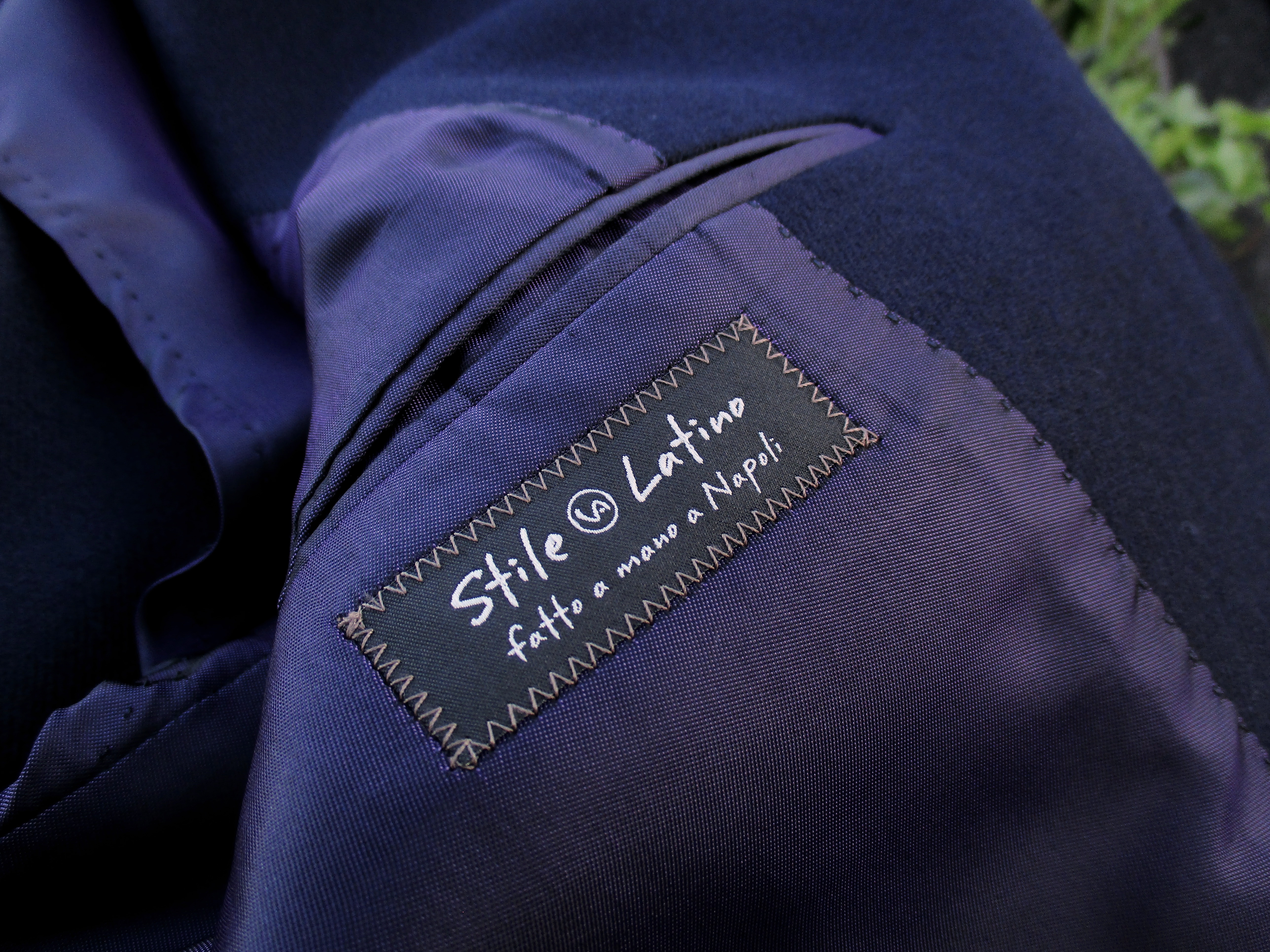 両方ともパープルの美しい裏地を使っています。写真で表現するのが、難しいパープル。実際は、もっと光沢と奥行きがあります。見えないところですが、脱いだり羽織ったりする時のチラリズムと、飲食店などで預けた際のドヤ顔が特典付き?と、すいません、下世話な話でした。