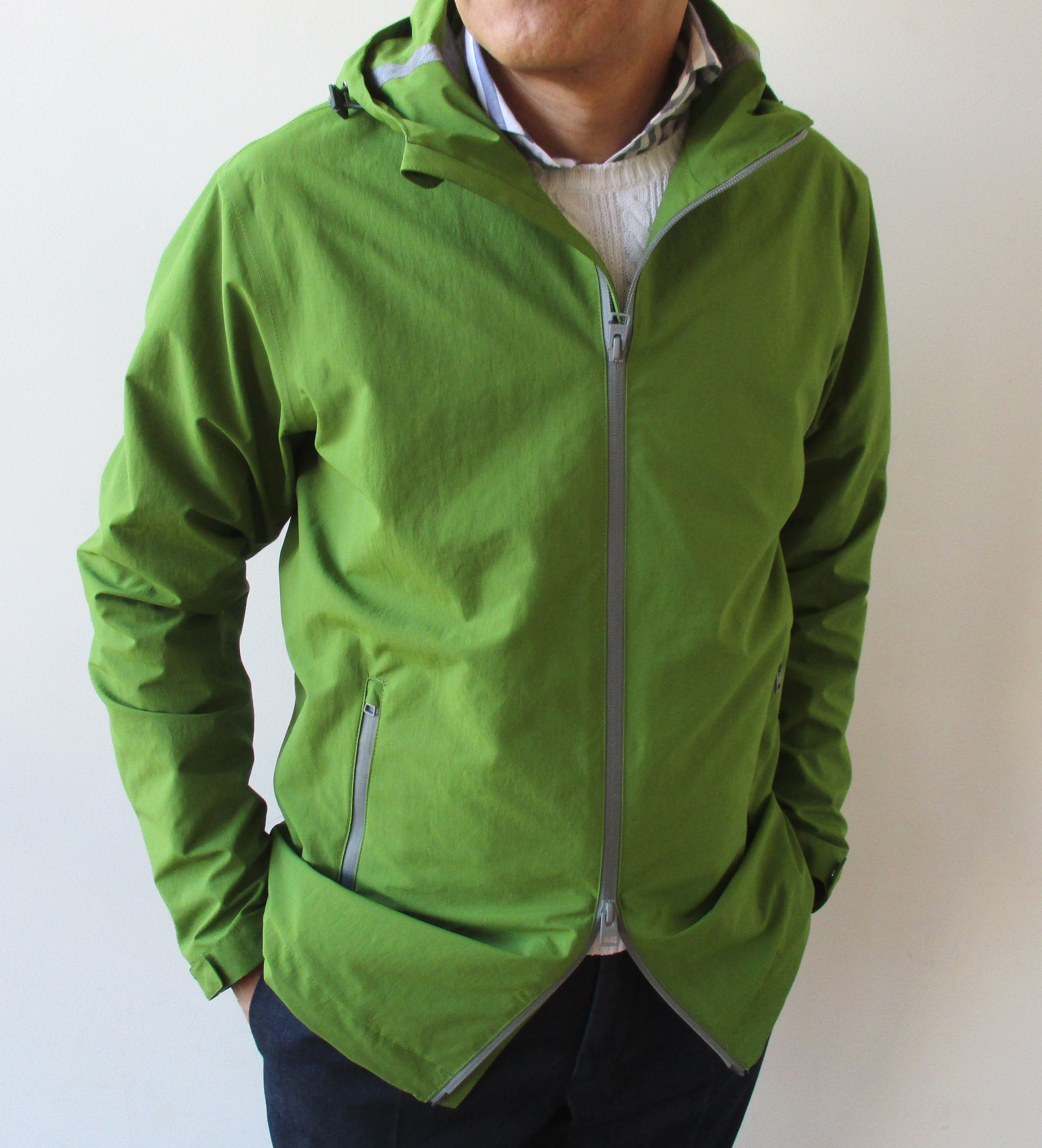 季節の変わり目、様々な環境に応じる為に機能性アウターは充実させたいものです。着るのは春になってからだけではなく、比較的暖かな冬日にセーターの上に羽織ることもできる便利なパーカーブルゾンです。風はもちろんのこと、撥水性の高いパウダーコーティングは少しぐらいの雨なら大丈夫です。