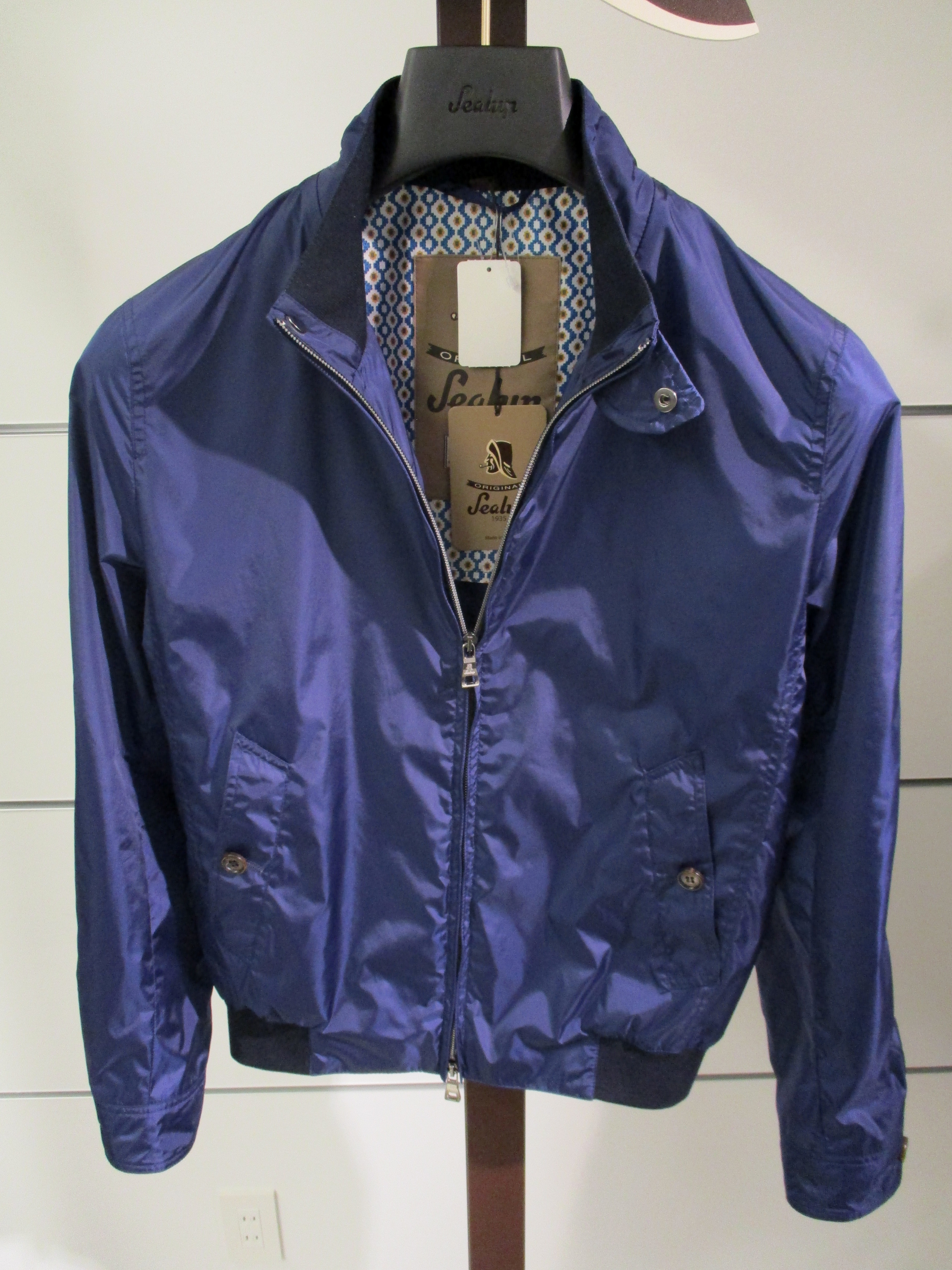 【Sealup/シーラップ】です。HERNO(ヘルノ)、MooRER(ムーレー)と並び、GLORY GUY/グローリーガイのアウター&コートの屋台骨となるブランドです。定番のショートブルゾン「7505」は春の人気物。昨年は「017」のオリーブを選びましたが、今回、サンプルカラーの「95」ブルーを選んでおります。