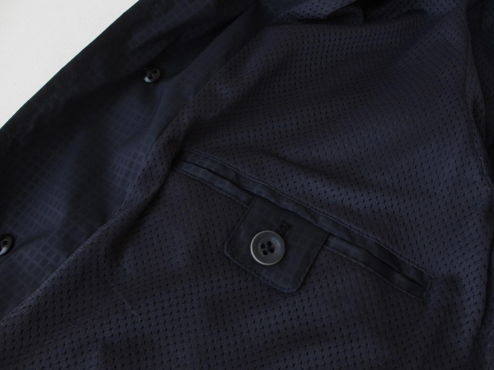 特筆すべきことは、素材のウォッシャーナイロン。日本では、しじら織りと呼ばれるシアサッカーのような涼しげな風合いです。薄さは、下の写真(裏地の下部分)をご覧になられると、良く分かるかと思います。季節の変わり目に良く見られる突然の雨。不安定な天気は、この時期の常。大切な服を濡らさない為にもナイロンコートの役割は大きいはず。ただ、最も雨の多い梅雨時に使いたくても、日本の湿度の高さを考えると羽織るのを躊躇してしまいます。でも、このコートなら、大丈夫。とにかく薄手で軽いんです。使わないときには、コンパクトに畳んで、鞄の中へ。雨が降ってきたら、颯爽と取り出して羽織れば、皆が道を明けてくれる雨の日の主役になれる?はずです。