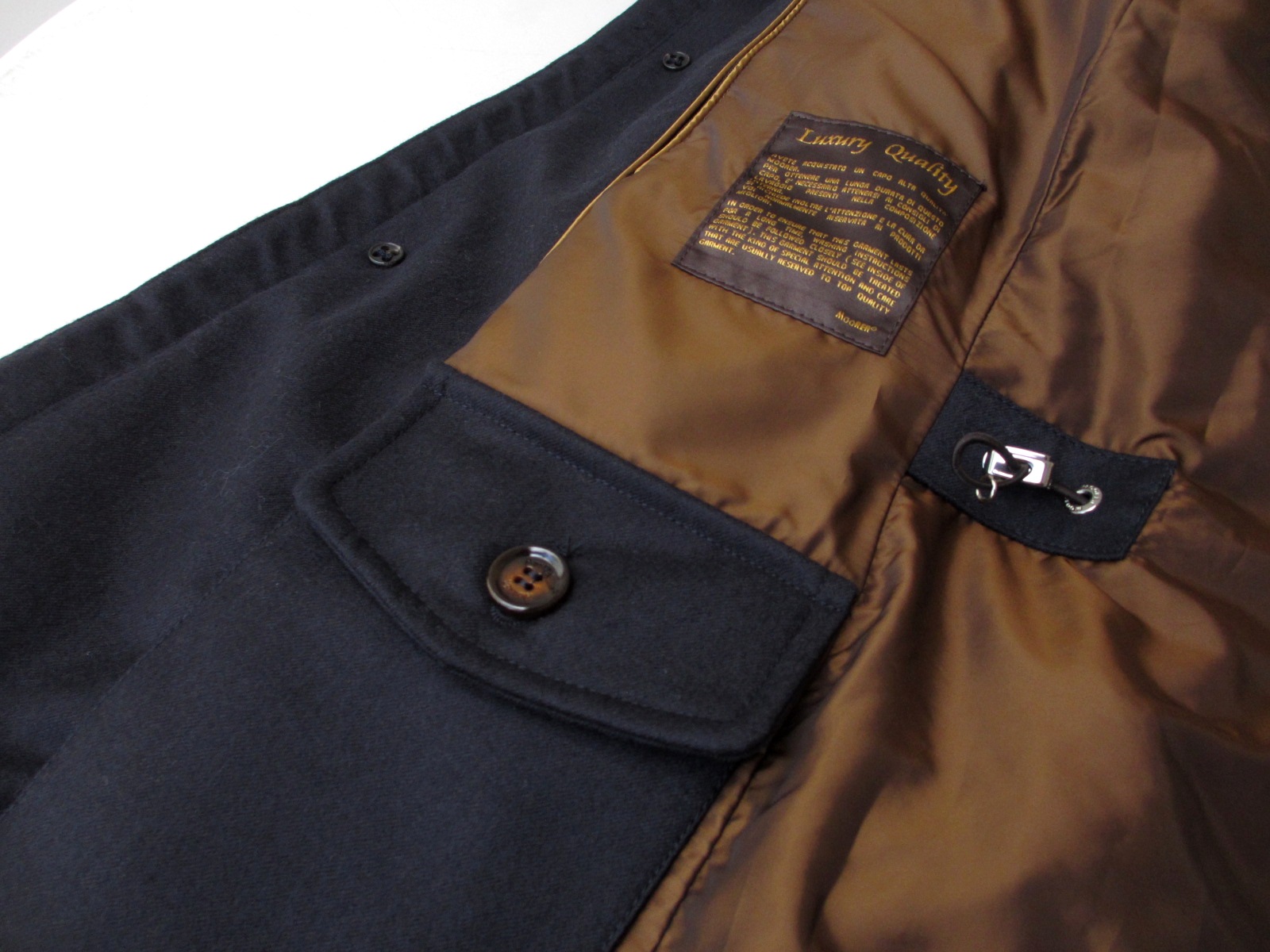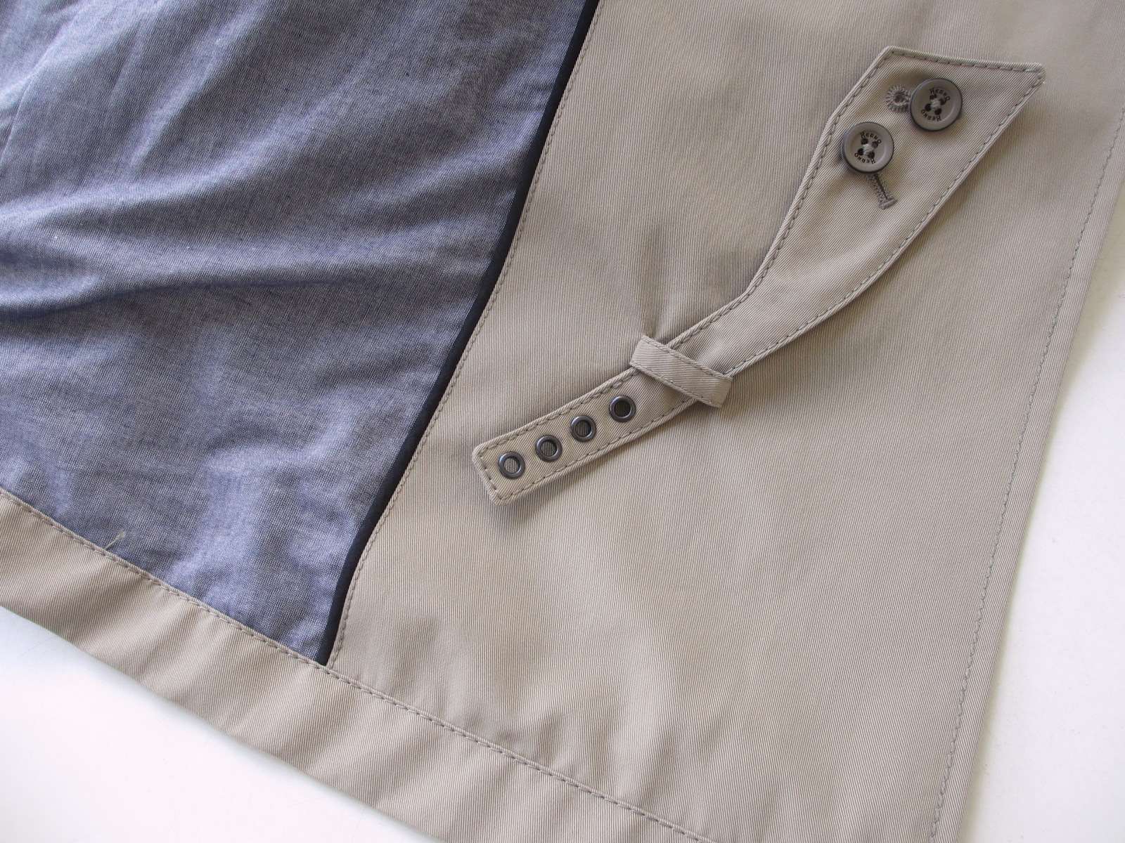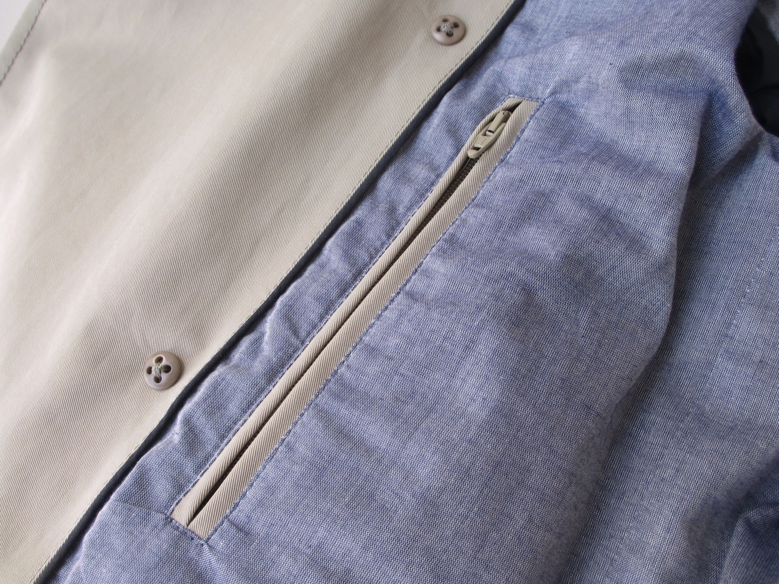 裏地は、清涼感あるモダールのシャンブレー。両サイドにはジップ付きのポケットが付き、コートを脱いで手に持っていても物が落ちることなく、安心です。