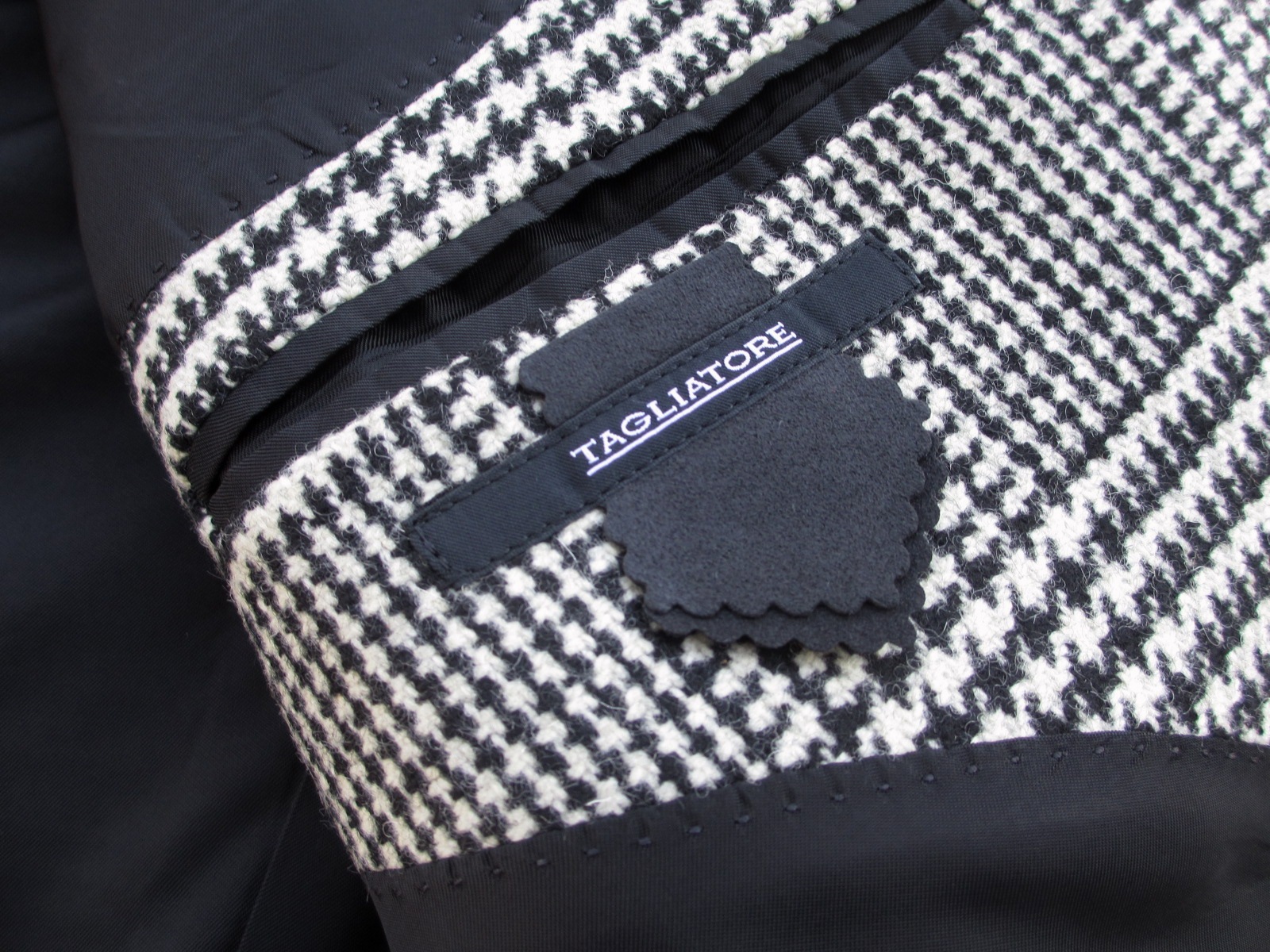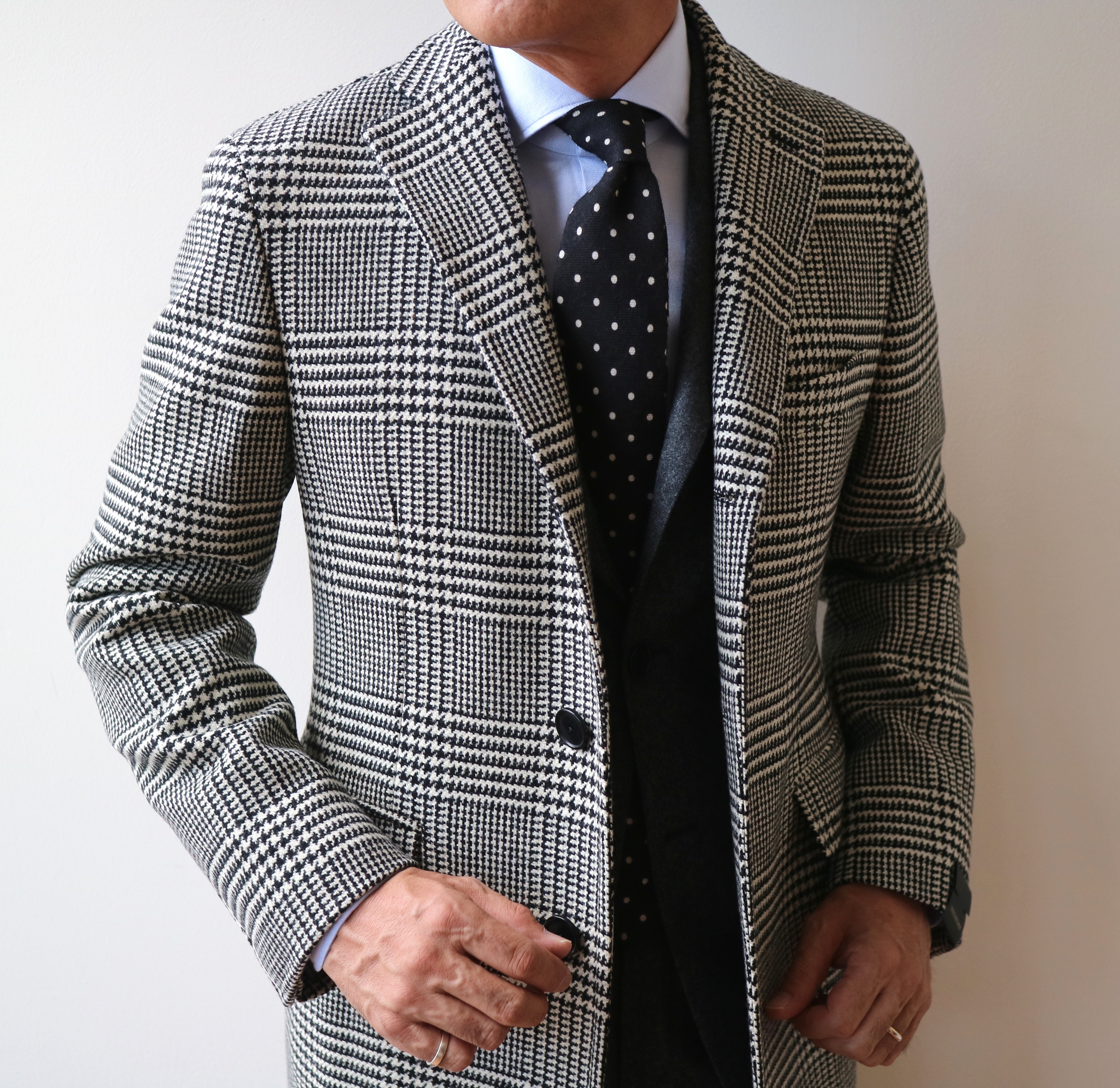 ウール100%のモノクロのグレンチェック。柄行きの大きさが絶妙です。