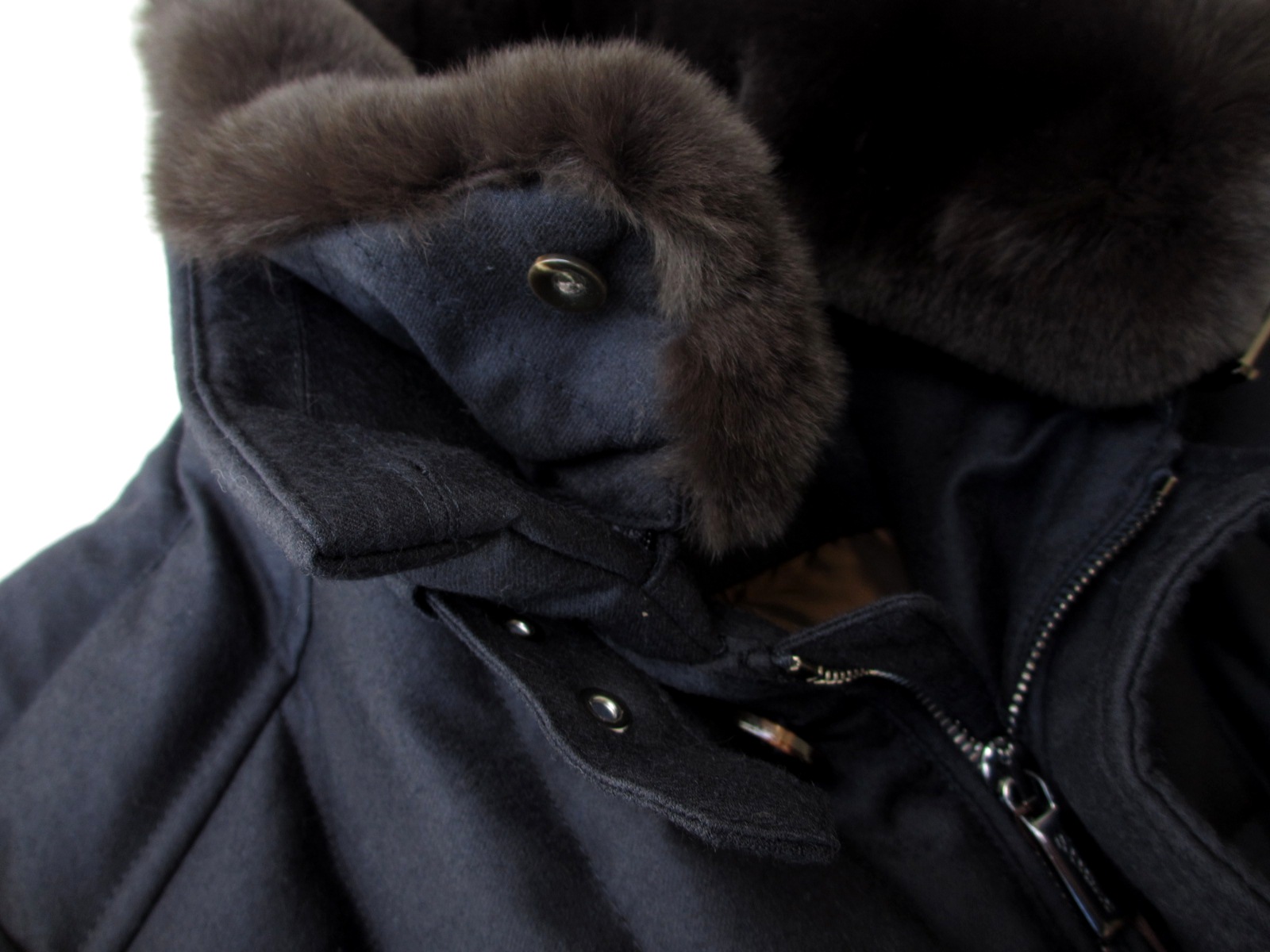 素材は、昨日ご案内させていただいたダウンベスト「OLIVER」と同じカシミア混ウール。裏面にポリウレタンフィルムをラミネート加工し、防水性を高めています。ファーは取り外し可能でオケージョンによって使い分けていただけます。