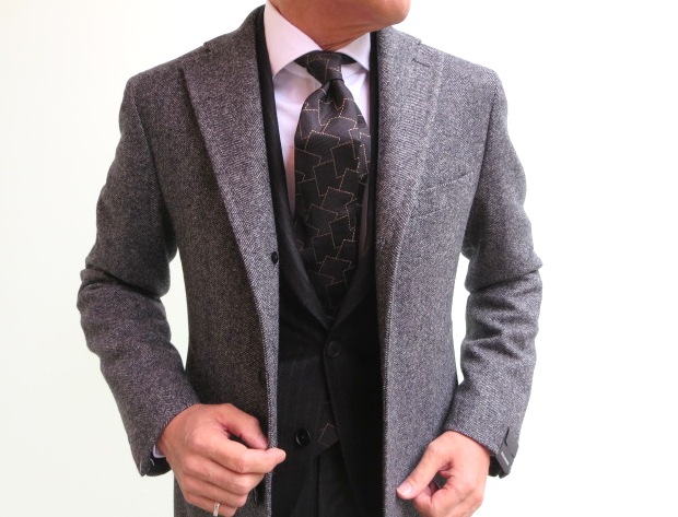 今季は、各ブランドから様々な柄物が提案されています。そんな中、オーソドックスなグレイのヘリンボーンは、逆に新鮮です。私たちの世代にとって、ネイビーブレザーの次に購入計画を立てていたのが、この柄のジャケット。懐かしくも新鮮な柄行です。