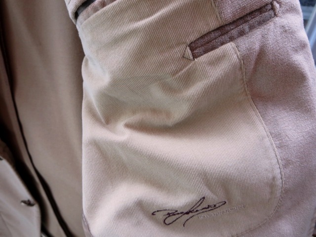 前身頃にはコーデュロイを使い、下のほうにさりげない彼のサイン。ファンの方にはたまらない特別な一着になるはずです。