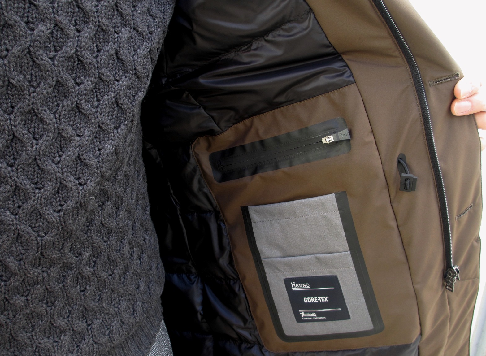 内ポケットは水が入らないようにと止水ジップを採用。デザインと機能性、どちらも高次元で実現させてしまう【HERNO/ヘルノ】。年々、人気が高まる理由は、ここにあります...は、昨年も使ったフレーズでした。
