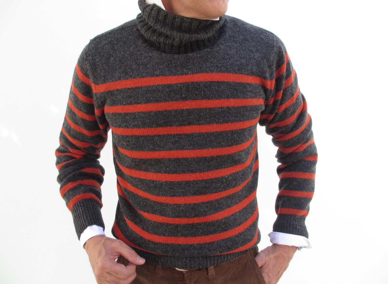 MODEL:ミドルゲージボーダー柄タートルネックセーター