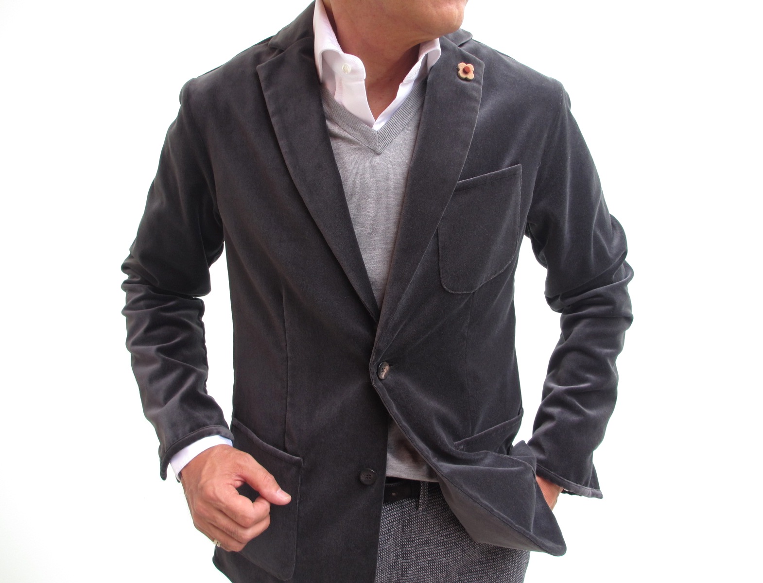 共地のジレもご用意しました。ラフなジャケットスタイルをエレガントに見せてくれるジレ。ジャケットと合わせて持っていると、いざと言う時に便利です。