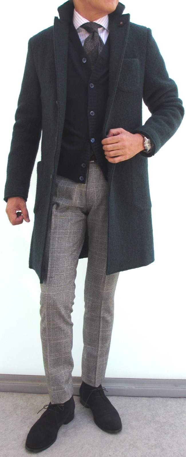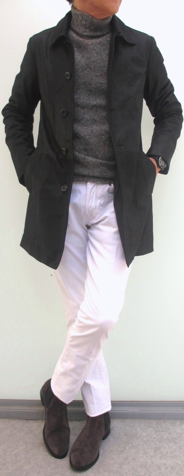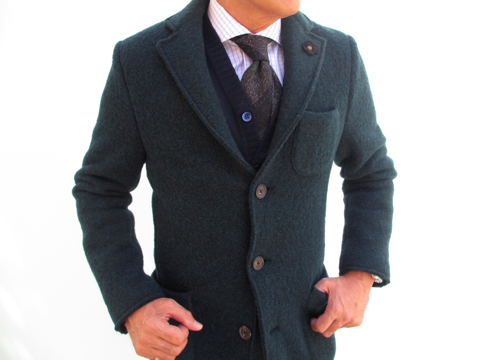薄手の軽い着心地。何気なく、さりげなく羽織っていても、存在感は黙っていません。意中の女性に、「この人、何者?」って感心を持ってもらいたいなら、このコート、ぜひお勧めいたします。