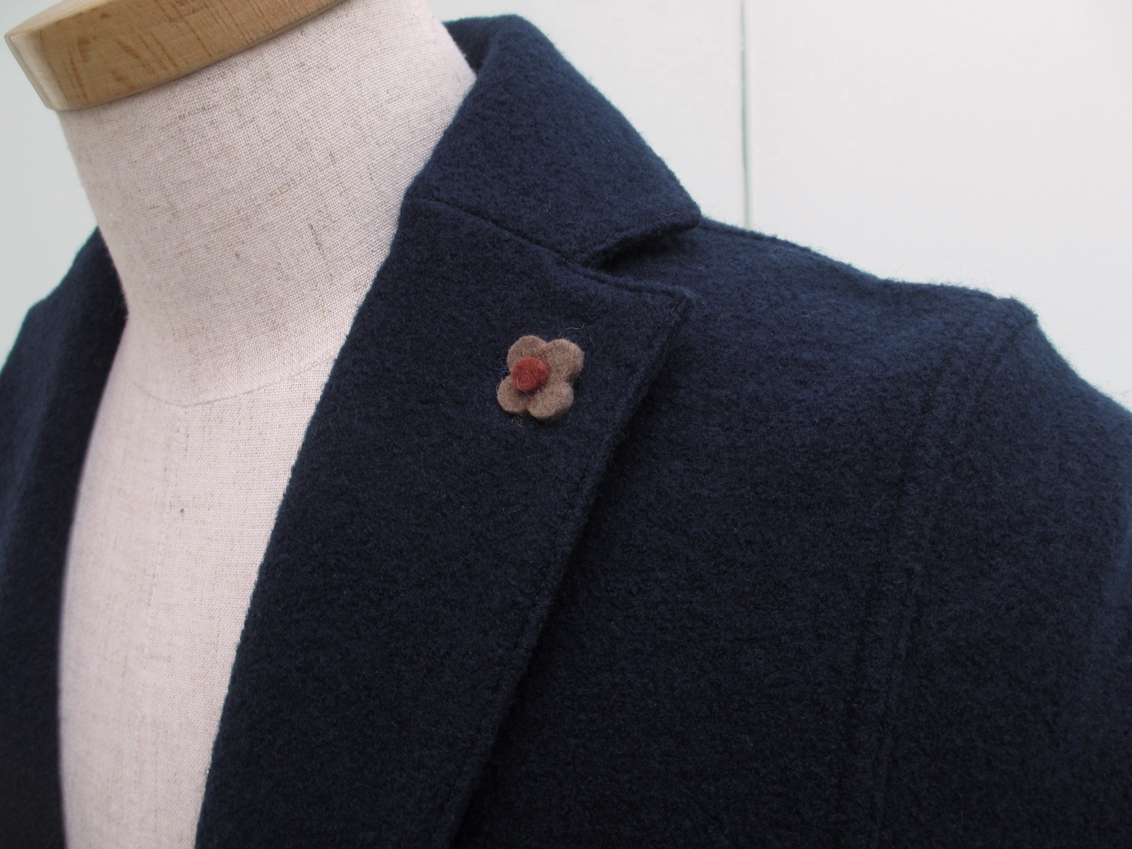 今季より、登場したモデル「EASY」。8月8日に既にご紹介させていただきましたが、従来モデルの肩パット、芯地などの副資材を省いた軽量ジャケットです。