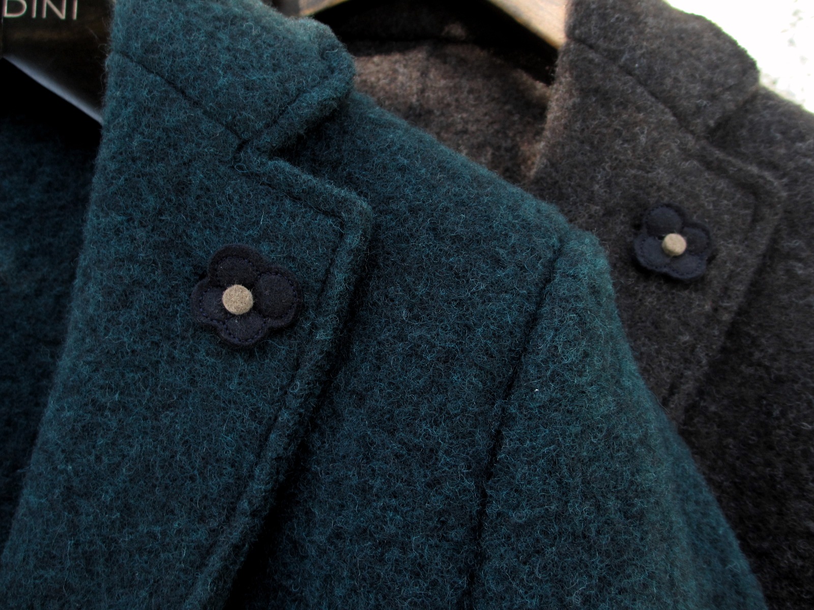 ウール100%の圧縮ウール。青みのあるグリーンとグレイッシュなブラウンの2色をセレクトしました。