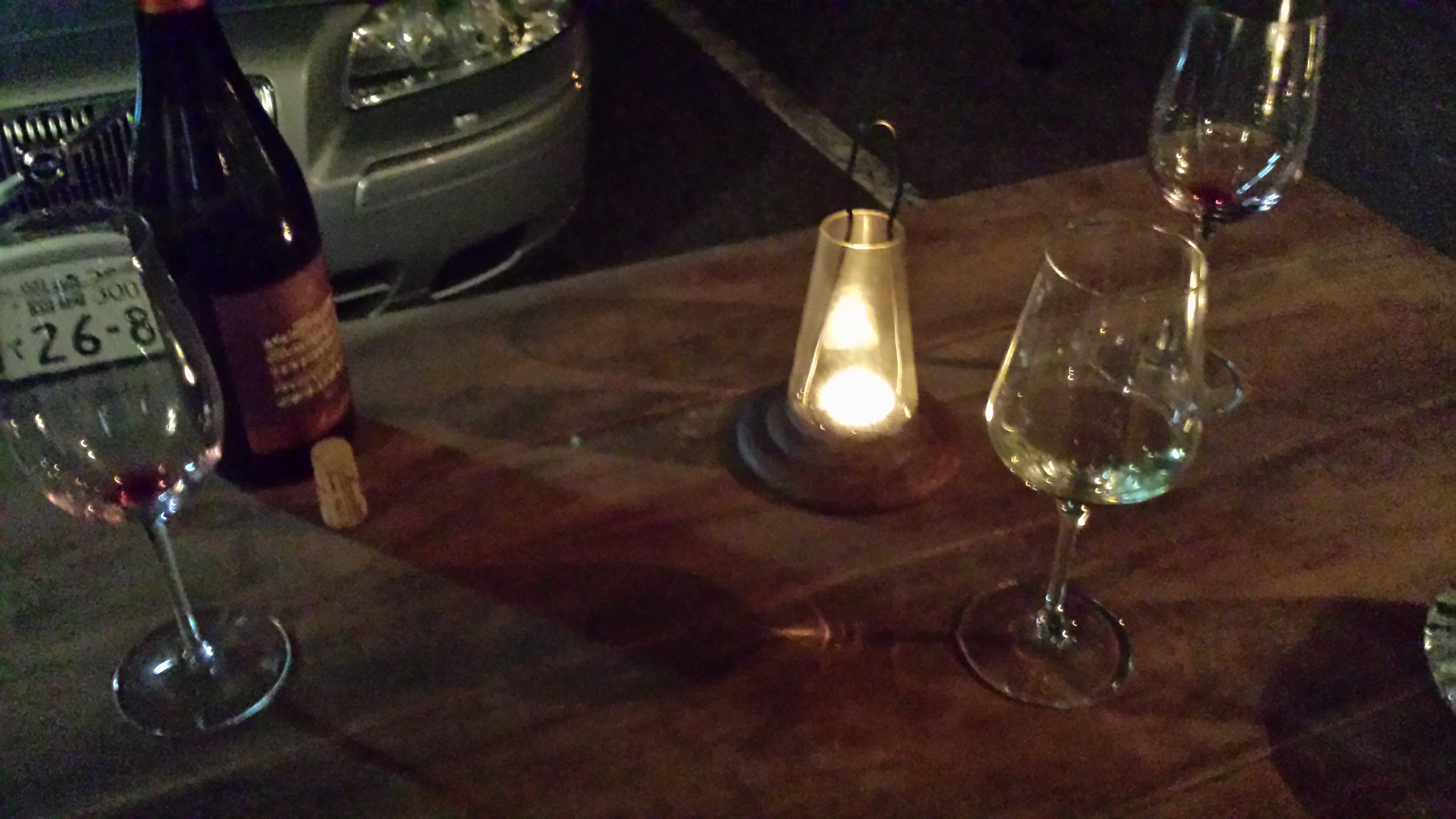 こじんまりとしたテラス席。気持ちのよい秋の夜長は、話に花が咲きます。この日、他のお客さんが早い時間に帰られたので、オーナーシェフのShihoさんを交え、恋愛談義。ただ、40,50代は現在進行形ではなく、学生時代の恋の昔話。でも気分は学生のようで、みんなの瞳は童男と乙女?でした。