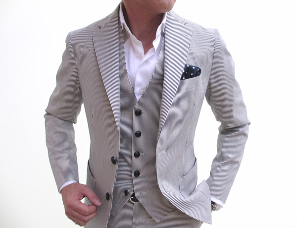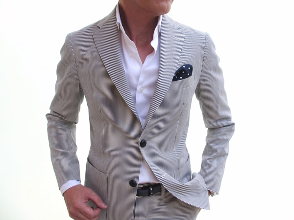 2014年春夏のトレンド…かもしれません。どのブランドのコレクションを見てもシアサッカーやコードレーンの生地を目にします。オンのカジュアル化、オフのドレス化でしょうか。それともクラシック回帰の流れなのかもしれません。いずれにしても、気温の上昇と共に、ただ単に服を脱いでいくことだけは止めたいものです。