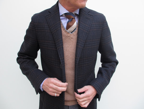ブラウン系のビッグヘリンボーンは、今季注目柄。クラシック回帰の流れは、個人的にも大歓迎です。世の中の流れが早くなればなるほど、変わらないものに憧れます。