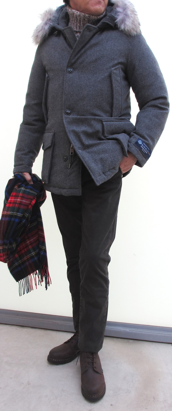 昨年から気になるコートといえば、ダッフルコート。若い女性の間では、スタジアムジャンパーが大人気とか。でも大人は、特に我ら男性には、やや抵抗があります。でもダッフルコートなら、若者に負けずにカッコよく着れるはず。なんせ、元々は男のアイテム。負けて入られません! 先にご紹介させていただいたLubiam/ルビアム。撮影の際にレディース店カシェートの女性スタッフからも黄色い声が上がったり、私のブログの大ファン?である18歳になる息子からも「親父、あれ欲しい!」なんて、熱いメッセージが来るほど、老若男女に大好評を頂いております。