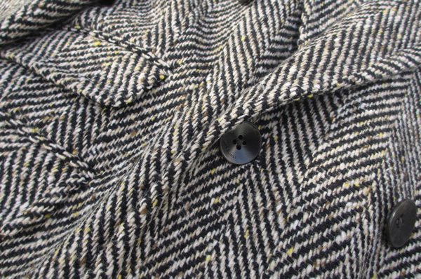 ベージュとブラックの大柄なヘリンボーンは、モダンでいてクラシック。きっと古都京都の町並みに溶け込んでしまうにちがいありません。キャメルやイエローの暖色カラーネップが、さらに温もりあるコートに仕上げています。