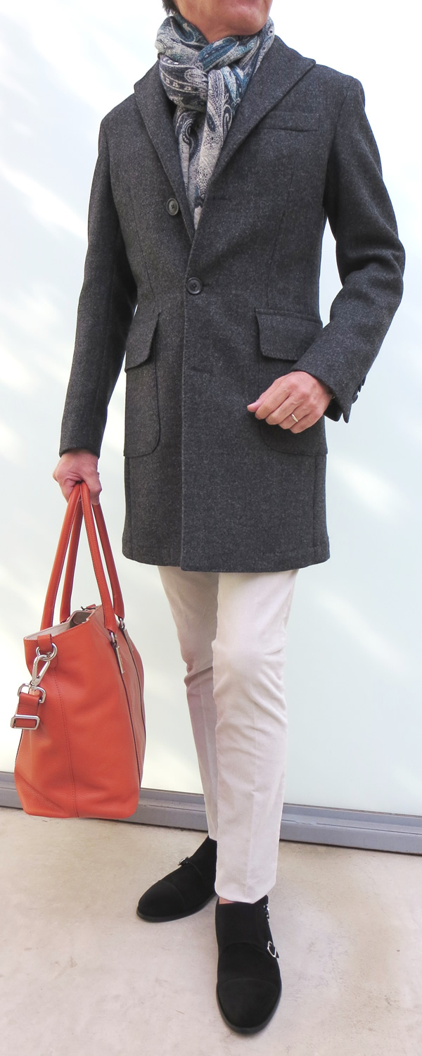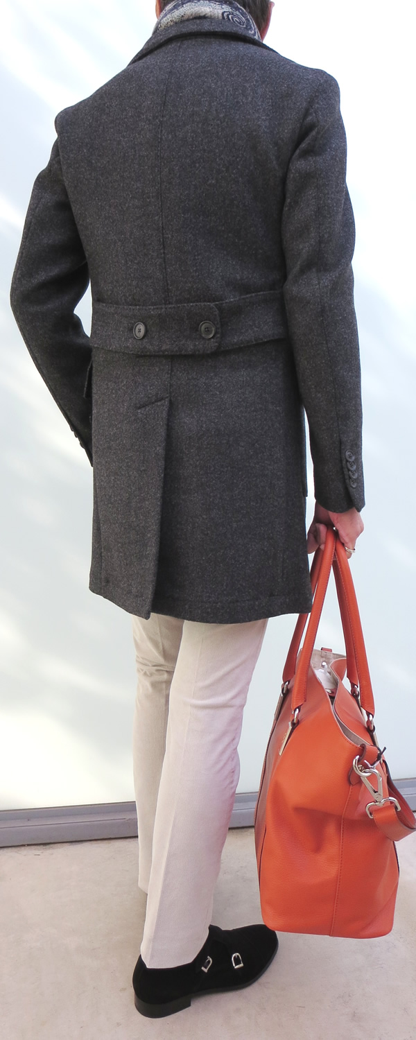 後姿も大切です。誰が見ているか分かりません。前ばかりに気を取られて、後姿を疎かにしていませんか。私も人のことを言えませんが、粋に見せるのは姿勢が大事。余り反り返ってもいけませんが、背筋を伸ばさないと、折角のコートスタイルが台無しです。気をつけましょう!