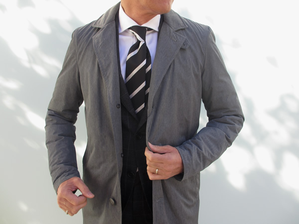 出張や旅行、もちろん普段の通勤や休日にと汎用性の高いコート。その名は、HERNO FLIGHT。空中を舞うよな軽さと中綿入りの保温性を確保した万能型コートは、パッカブルタイプです。グレイメランジとネイビーメランジの2色をセレクトしました。