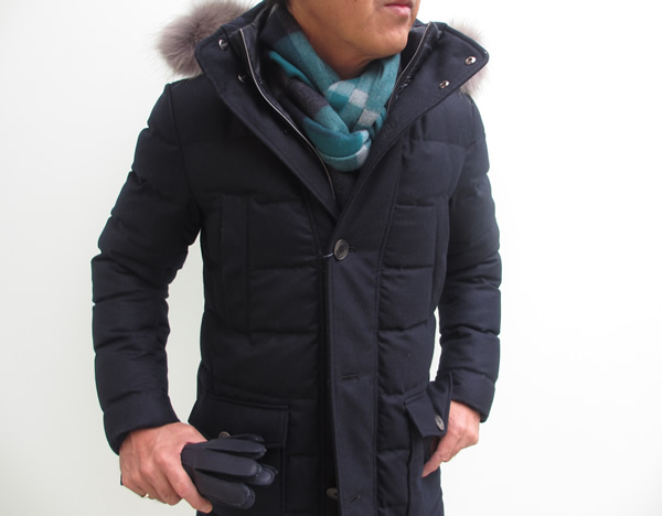 ソフトタッチのウール100%のロングダウンコート。シャープさとエレガントさと軽さと保温性の高さと文句なしのダウンコートです。