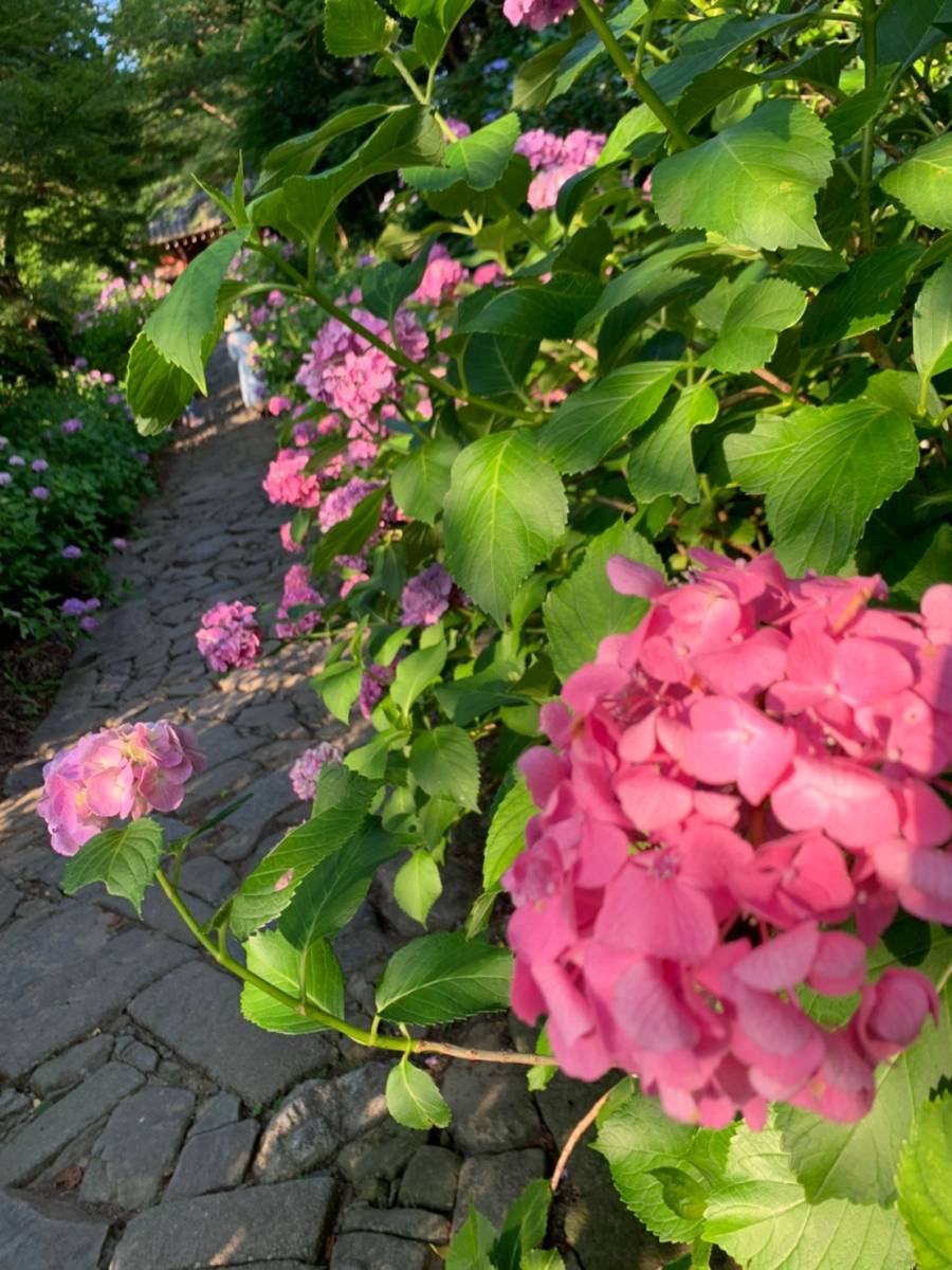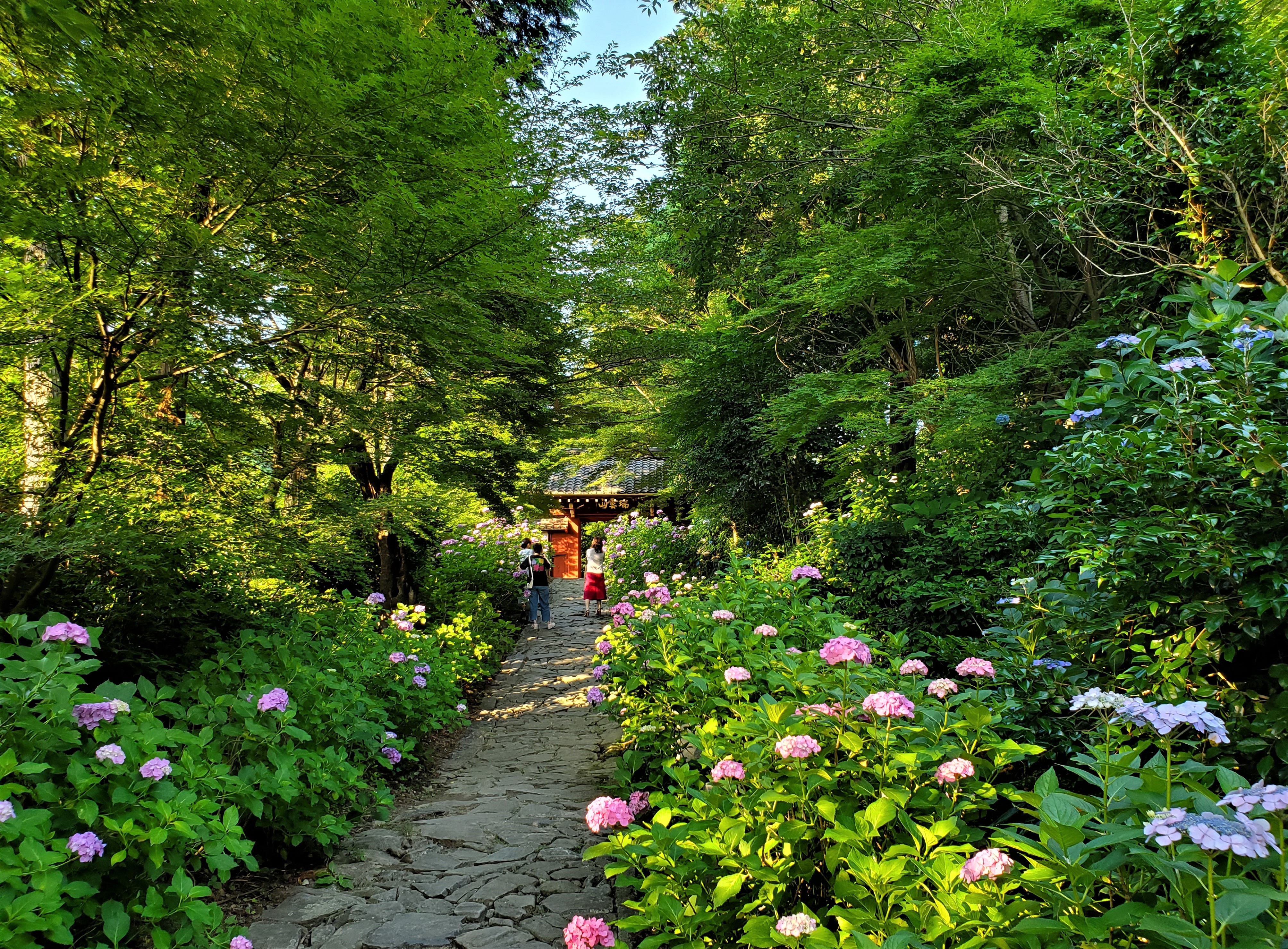 ブログが花だらけになってしまいますので、2枚だけ掲載します。本来なら、アジサイ祭りの真っ最中で、大きな賑わいをみせる名刹ですが、今年はこの騒ぎで中止です。境内にある15種類1万本のあじさいも数を制限しているとのこと。それでも、見応えのあるあじさいと花を取り巻く美しい風景。歴史をたどりながら、この季節ならではの景色を楽しんできました。