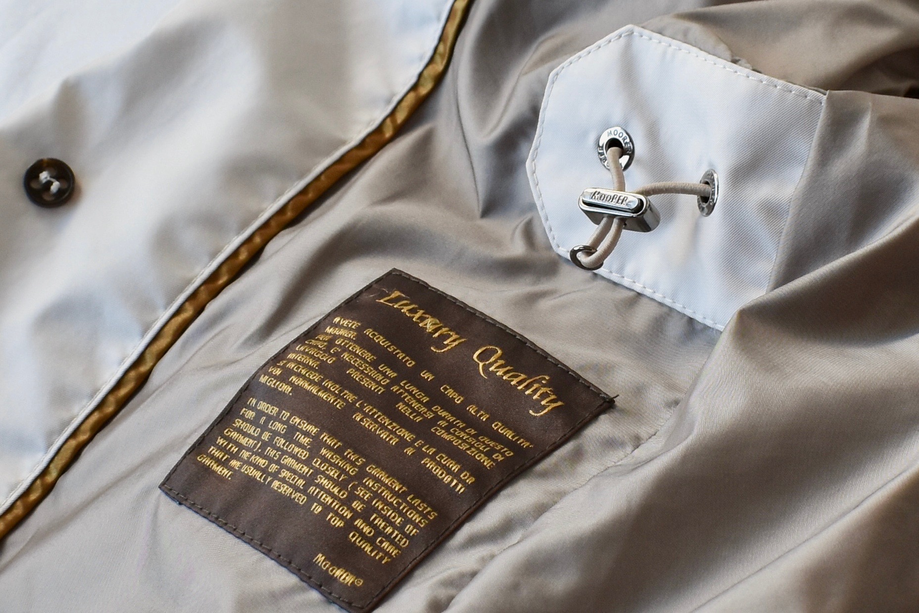 パーツの1つ1つにまで、最高品質に拘るMooRER/ムーレー。釦やファスナー、裏地などのディテールの美しさはいつ見ても惚れ惚れしてしまいます。