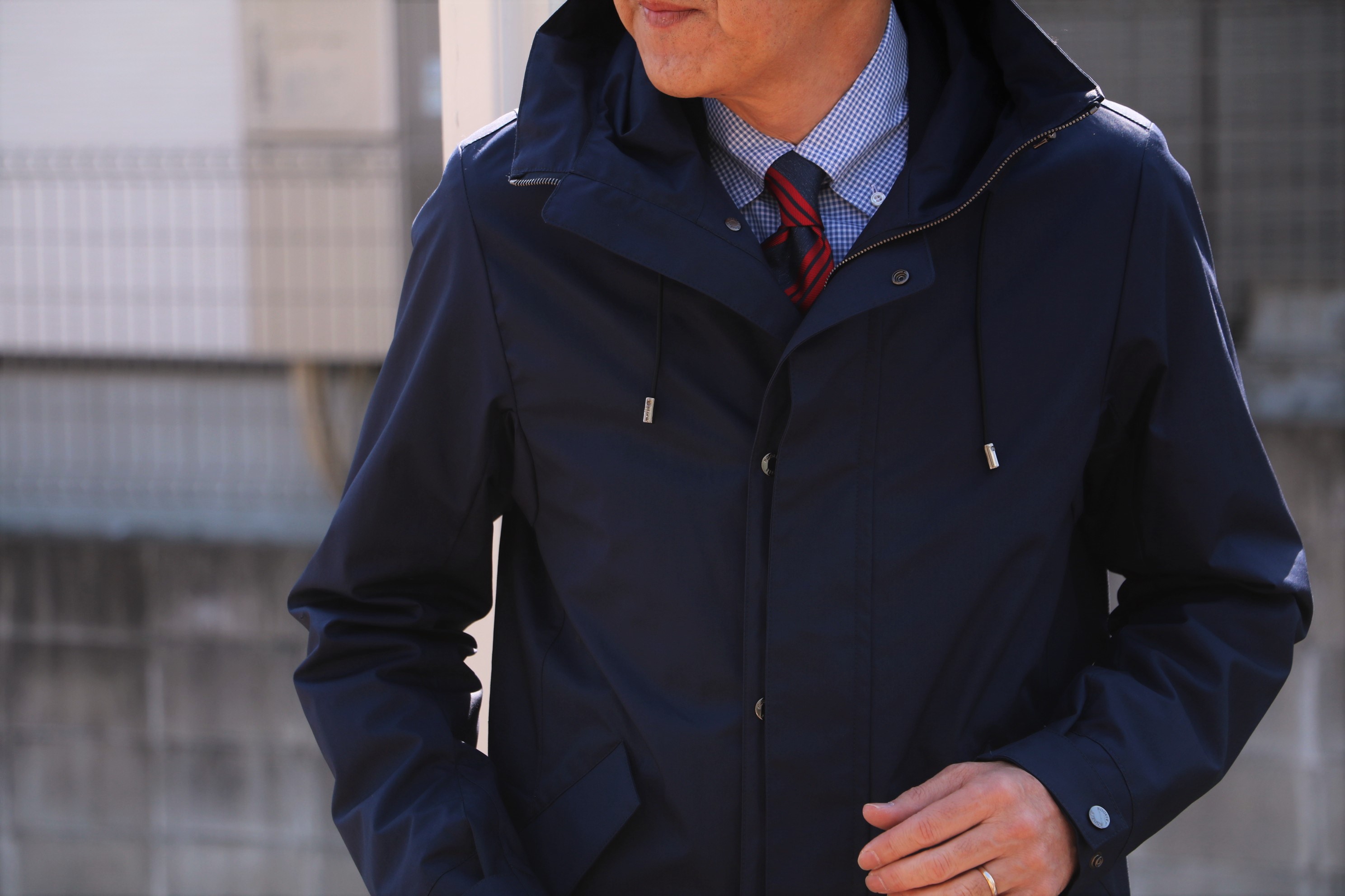 ウォッシャーナイロンと呼ばれるシワ加工を施したナイロンには、ポリウレタンコーティングの撥水機能があり、春先の風よけとして、そして蒸し暑い梅雨時の雨にも、それぞれの季節に適した快適な着こなしができます。