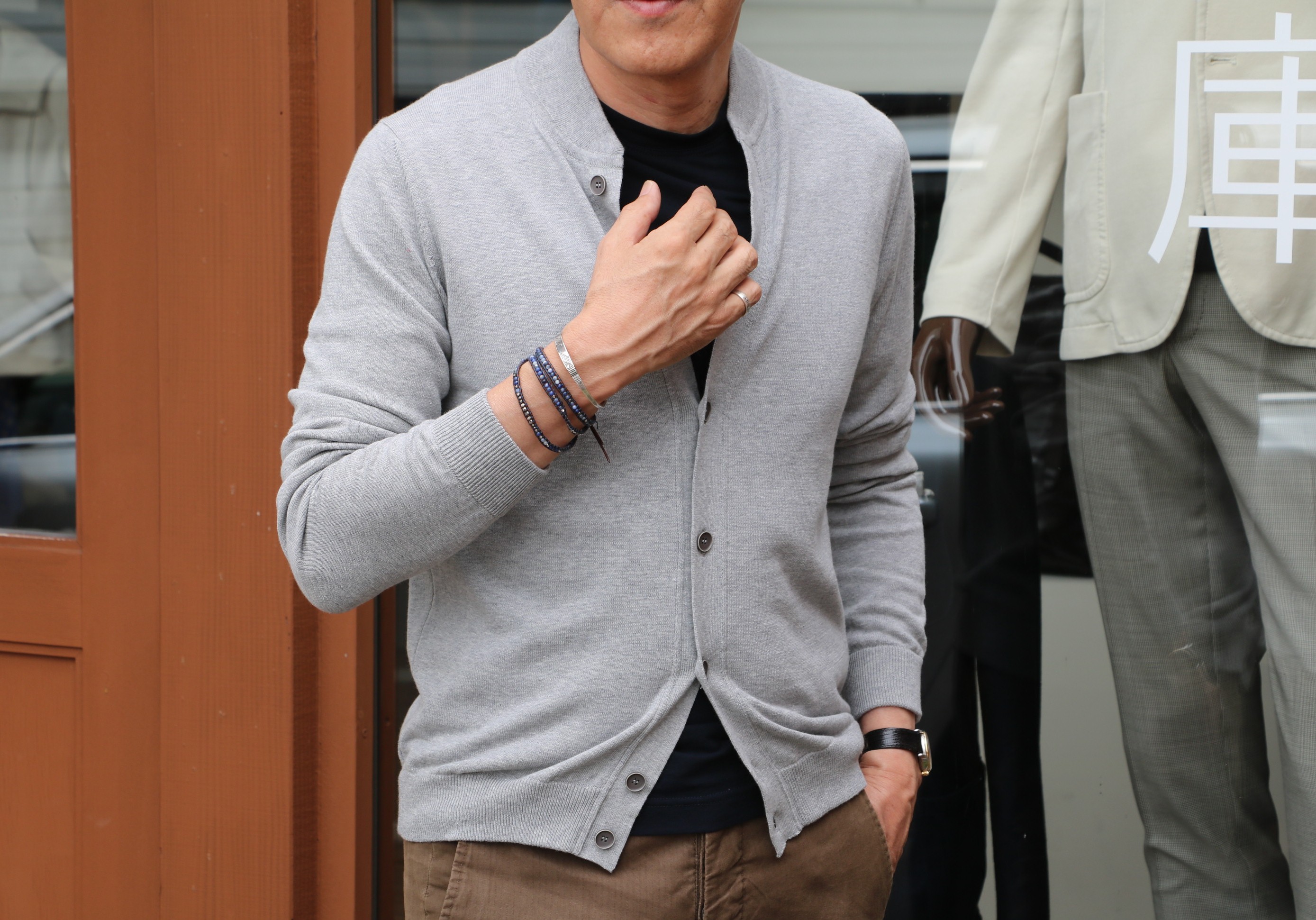 本日の出で立ちで、注目していただきたいのは、ジャケットのインに着ているカットソー。ZANONE(ザノーネ)のアイスコットンです。レディースをグローリーガイに移動させたのが、昨日。説得力のある接客をしなければなりませんが、女性スタッフはいません。私の女装も考えたのですが...いやいやおぞましい話です。