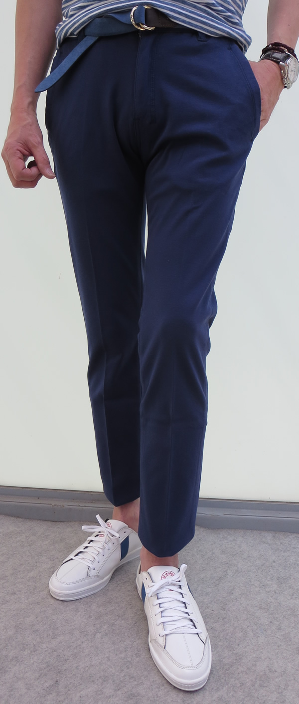 モデルは身長175cm、体重63K、胸囲91㎝でサイズXSをややタイトに着ております。合わせたカットソーはALTEA(未公開)、ベルトはD'AMICO、靴はSAWA(未公開)です。