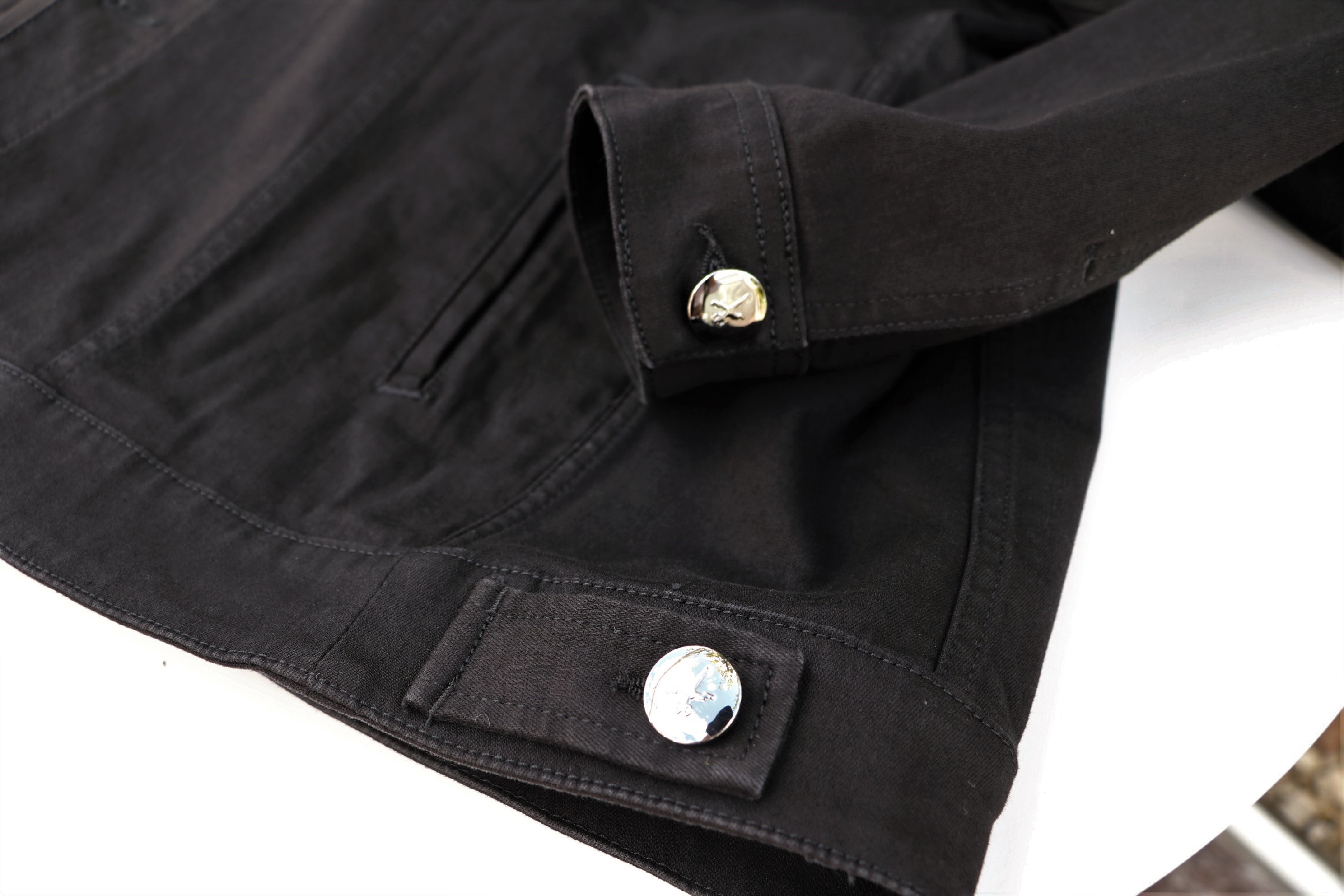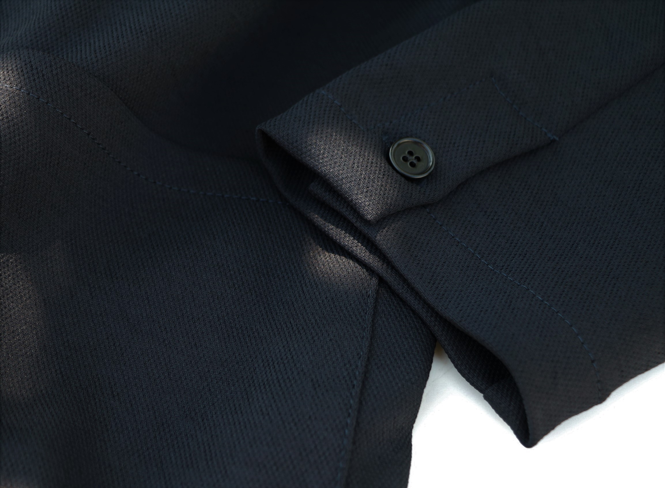 上のブラックが実際の色目です。ブラックに釦のシルバーが、モダンなコントラストをつけています。着心地は? ご説明するまでもありません。Superstretchのストレスフリーが、このブランドの持ち味です。