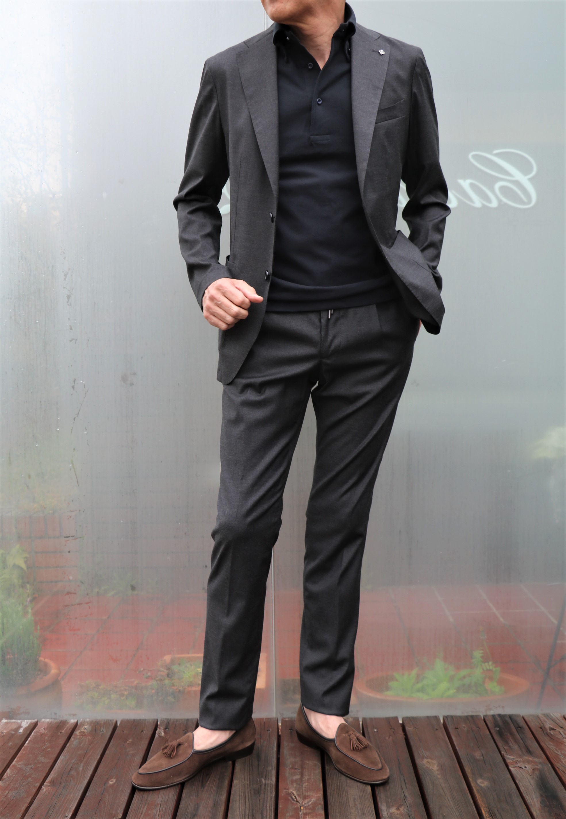 いざという時には、タックイン...は、オトナの嗜みです。羽織ったジャケットは、eleventy(イレブンティ )になります。