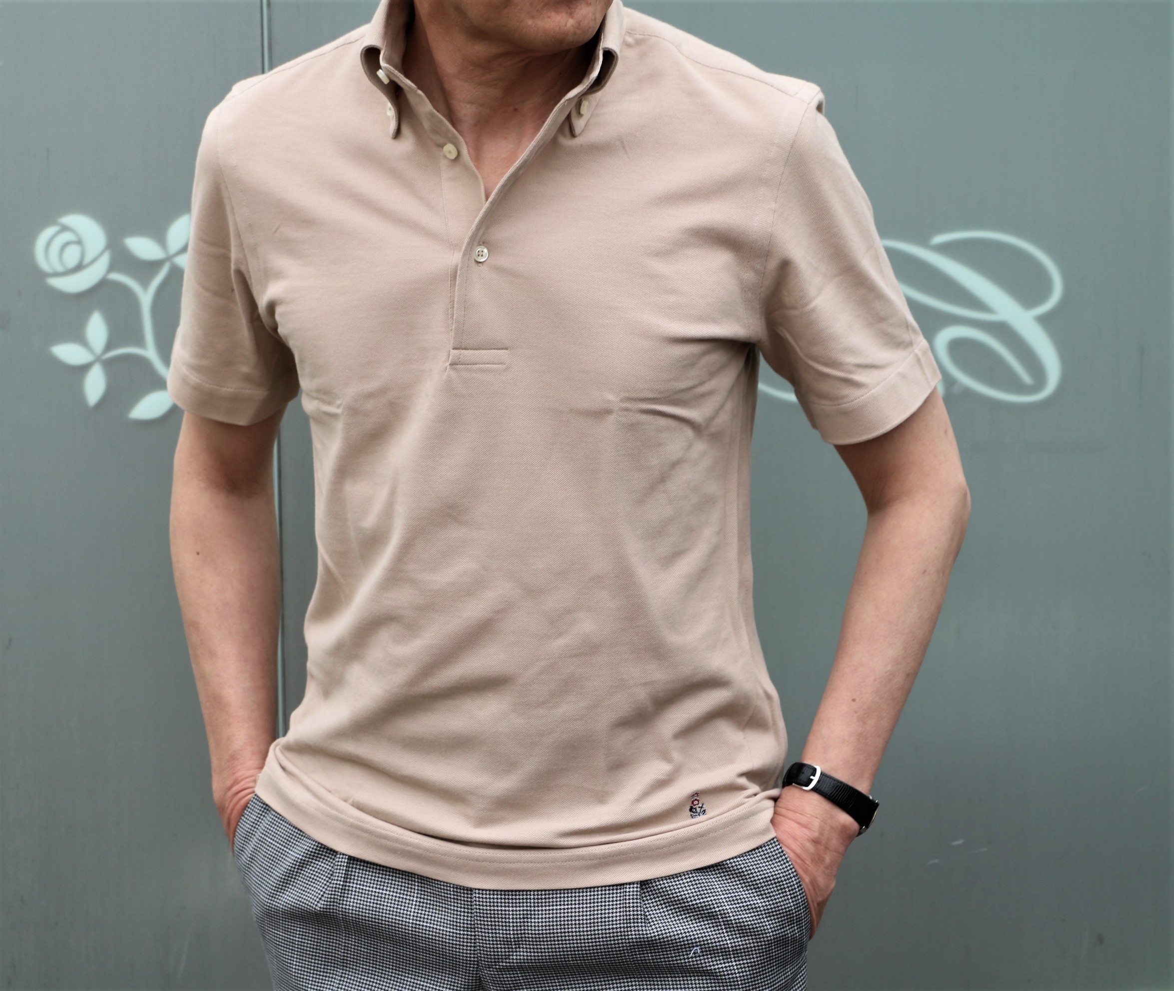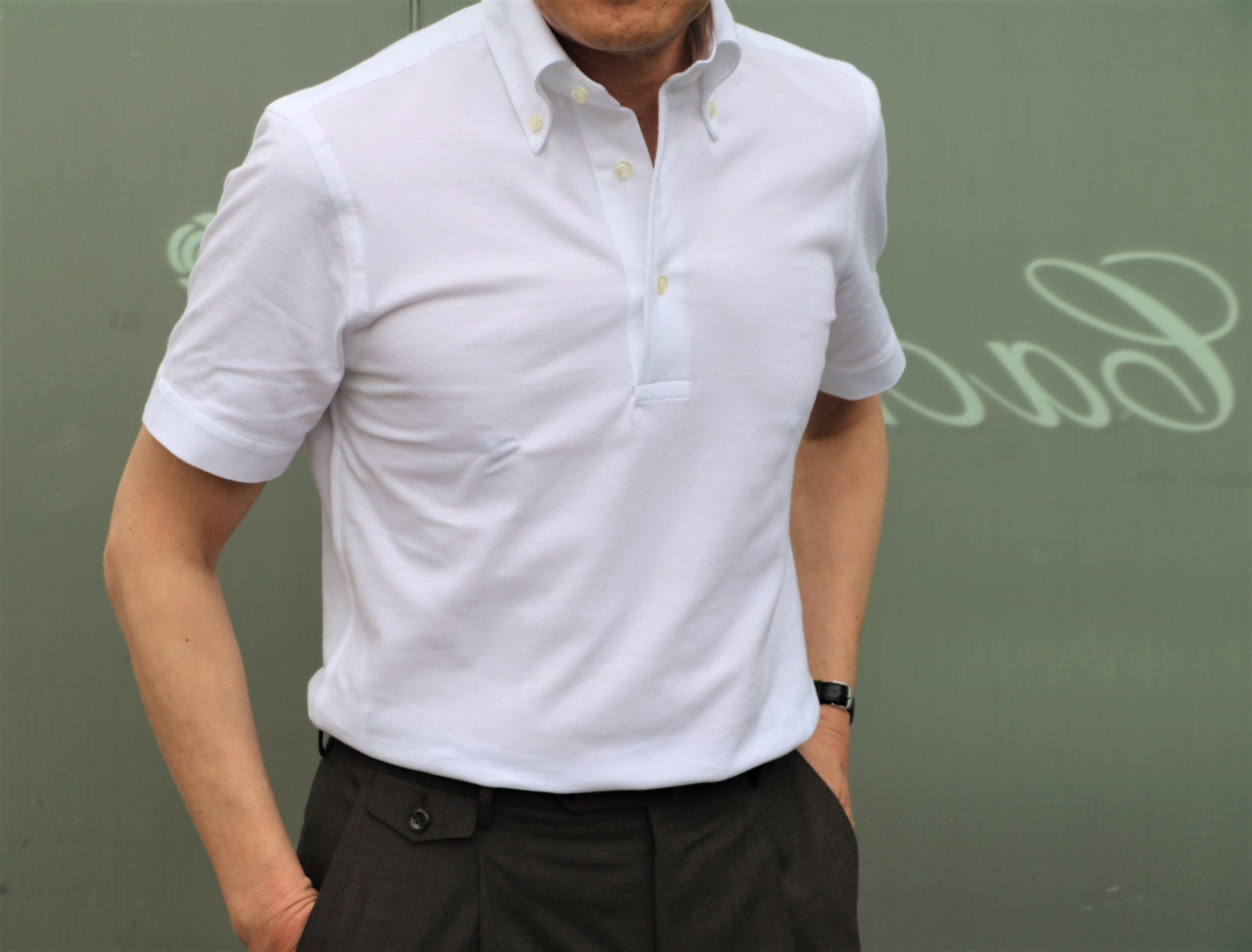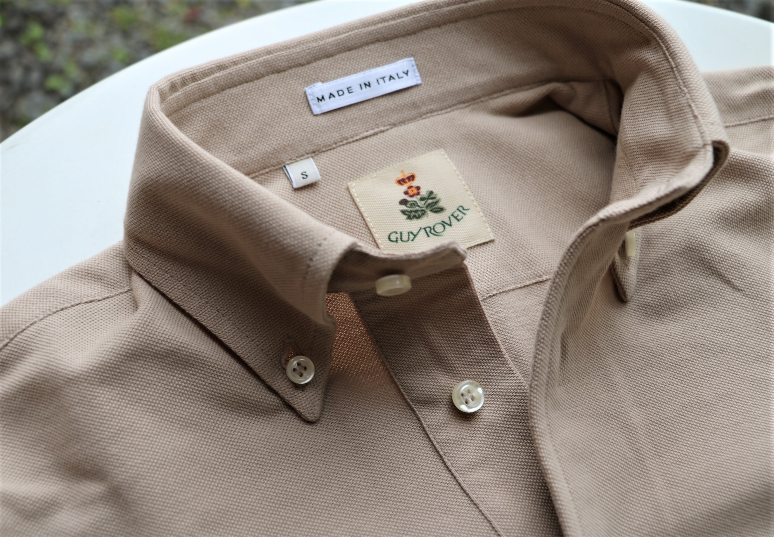 そして、本日のご案内としてご用意したのは、中に着ている【GUY ROVER/ギ・ローバー】のポロシャツ。季節を待ってのご紹介と思いましたが、もう待ってばかりはいられません。