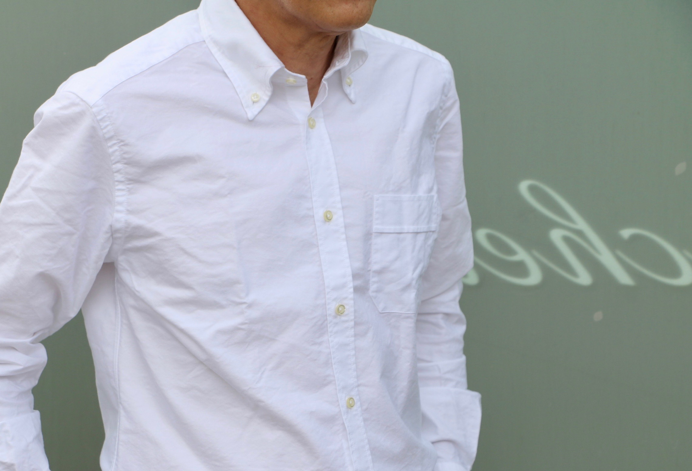 Tシャツと同じで、何枚持っていても困らないのが、ホワイト無地。オールシーズン使える男のワードローブには欠かせないアイテムです。