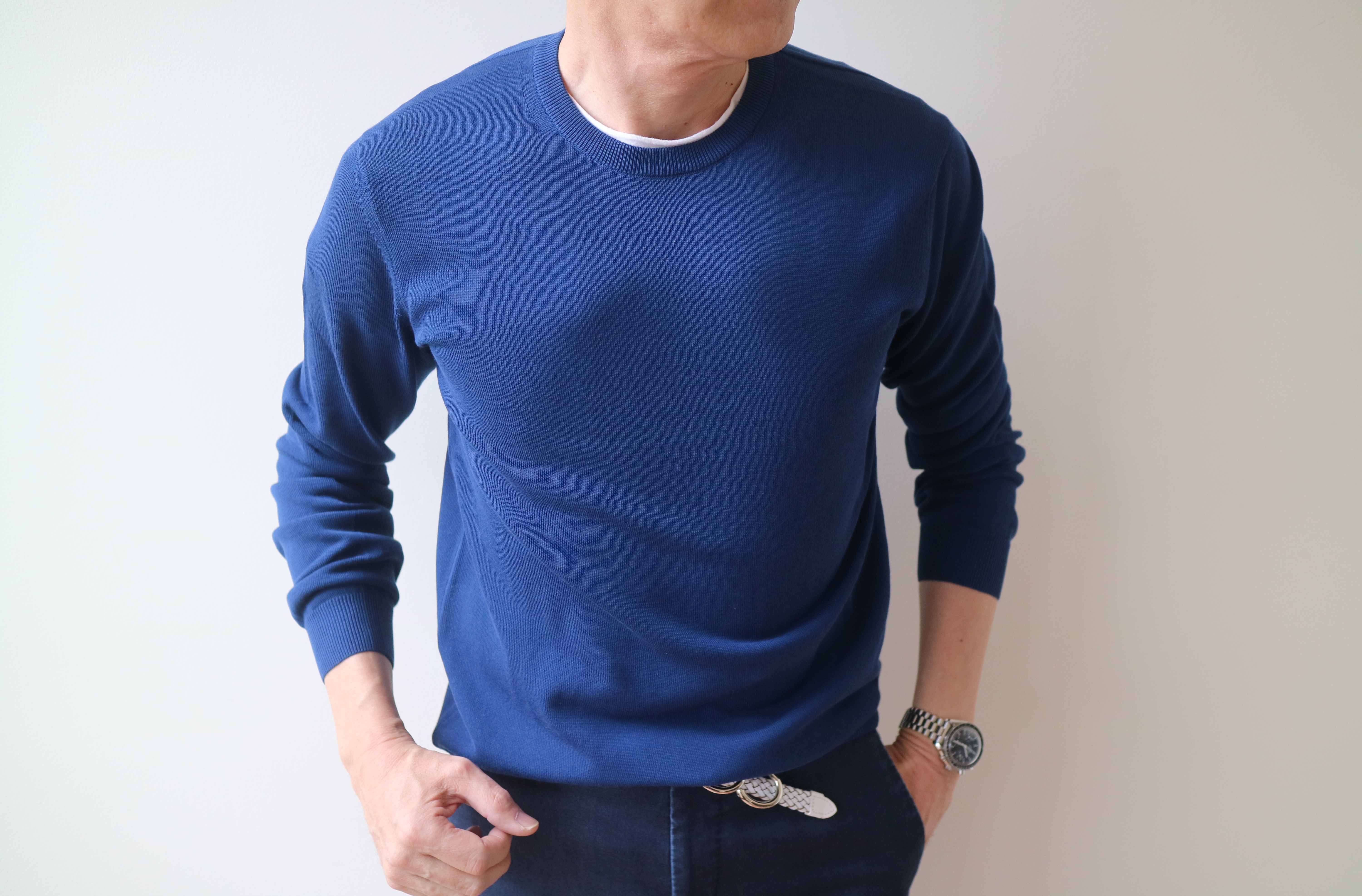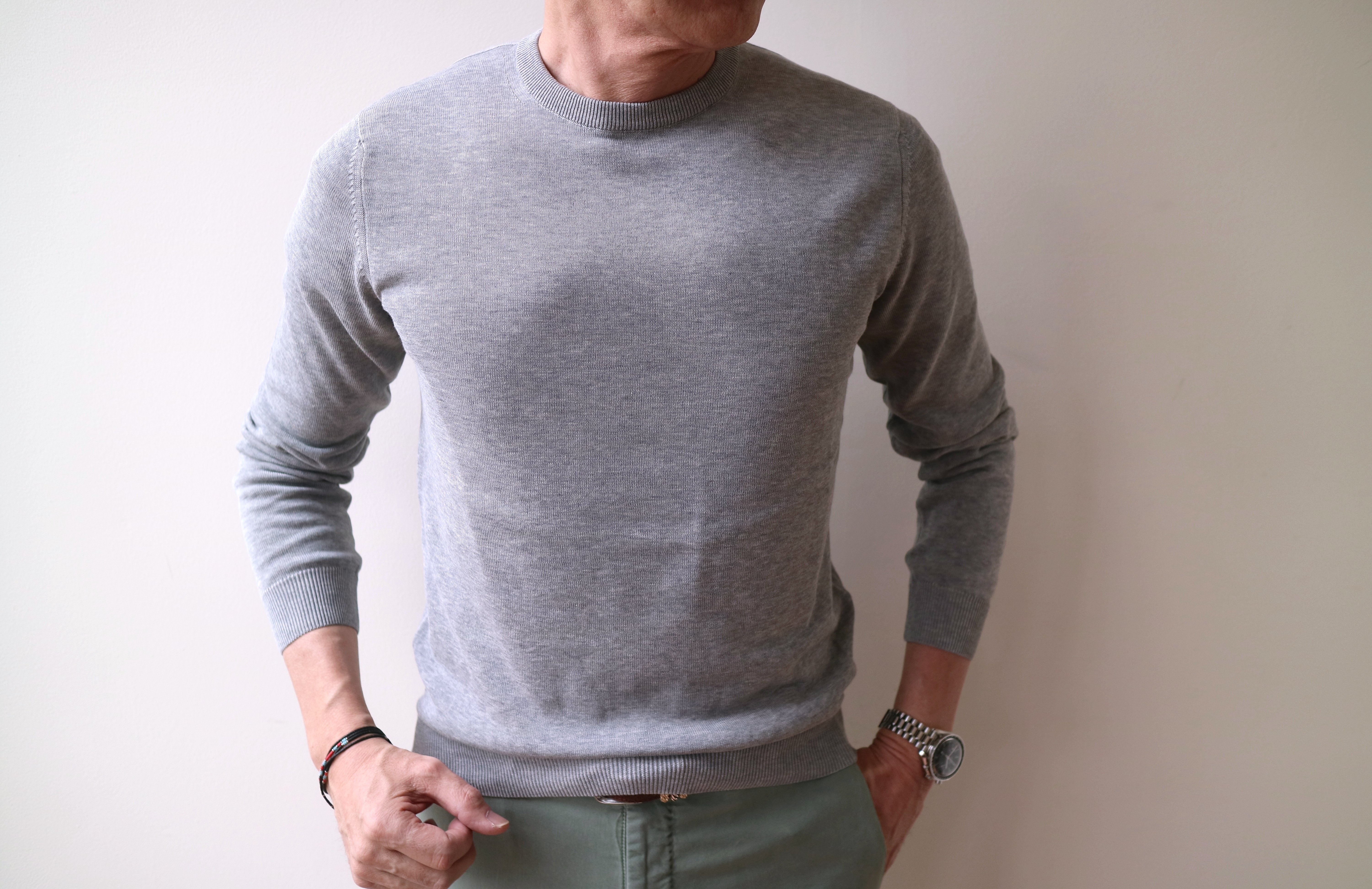まろやかに、クリーンに装うなら、ZANONE/ザノーネのドライコットンクルーネックニット&INCOTEX/インコテックスのコットンストレッチパンツ